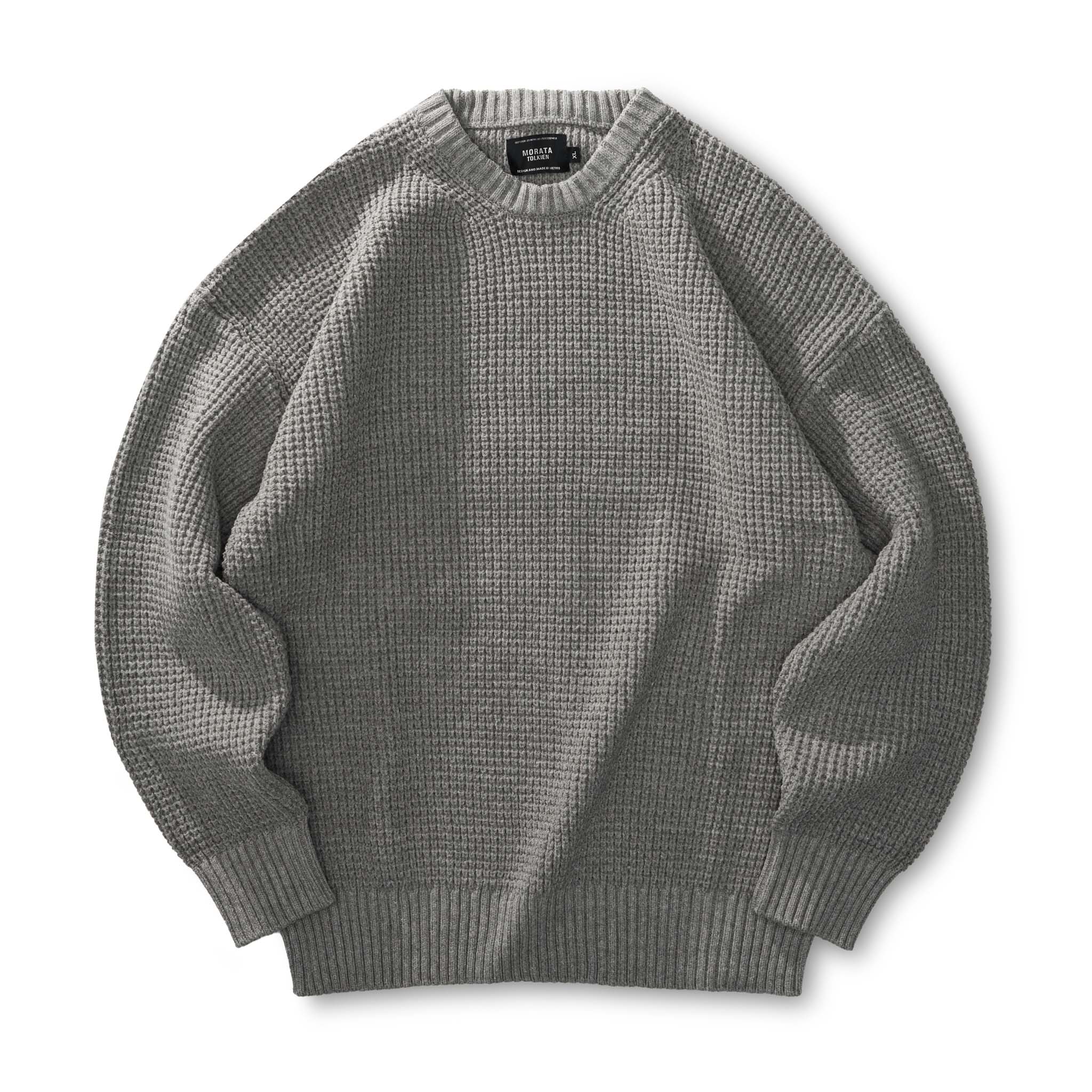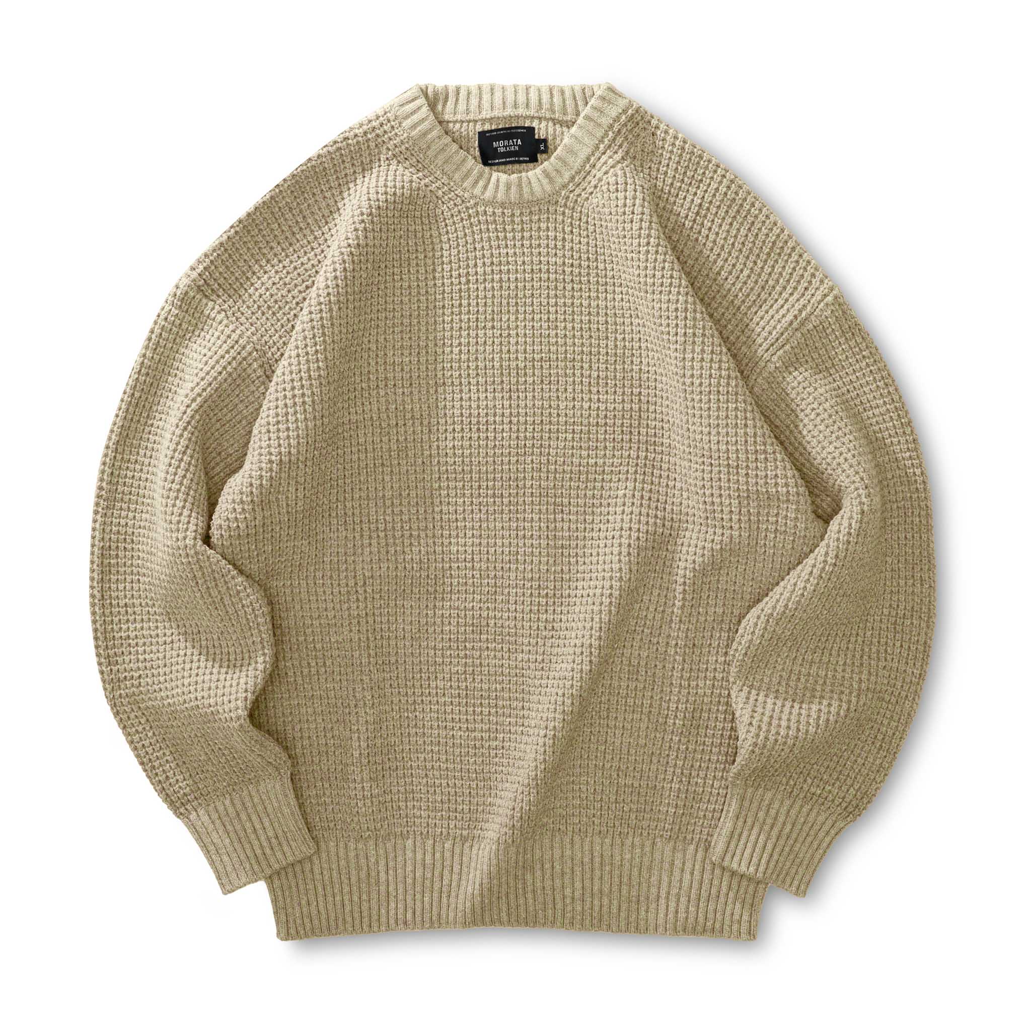 ヘビーウェイト ワッフル編みクールネックニットセーター