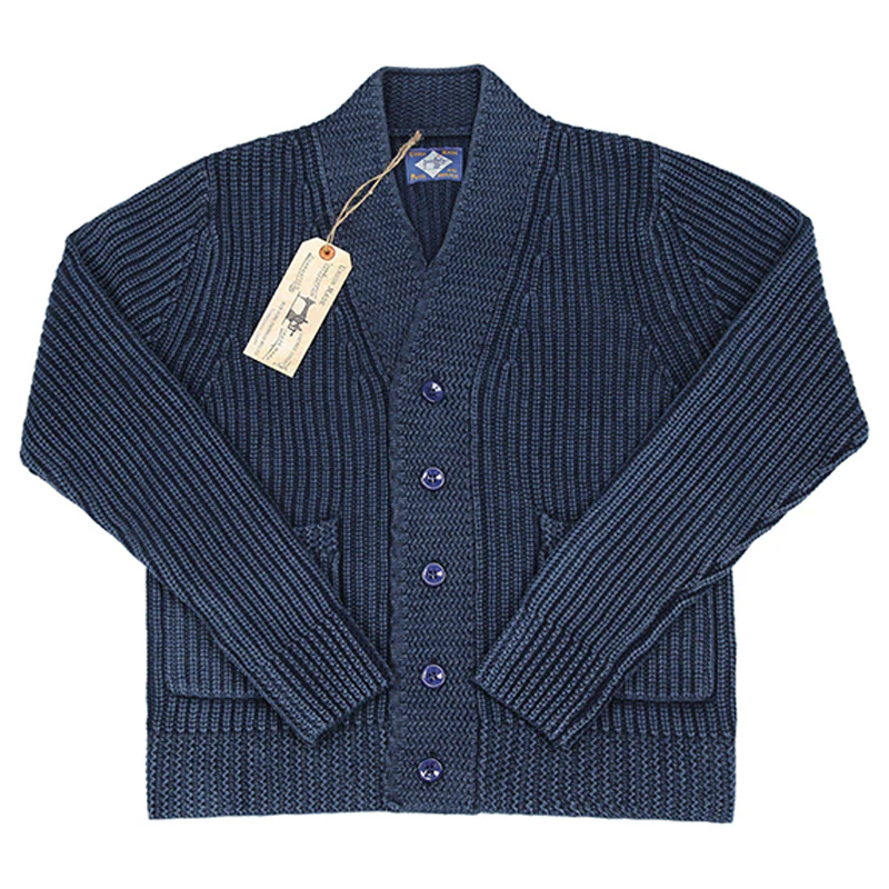 藍染め コットンニットカーディガン