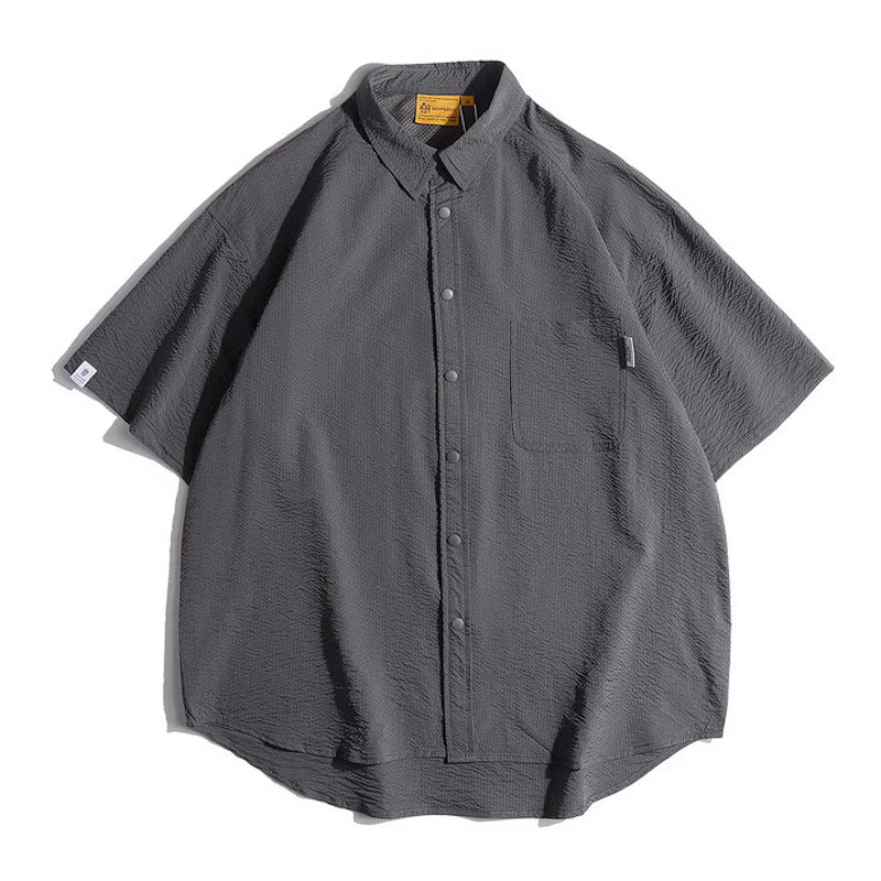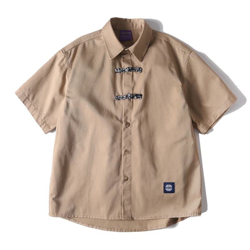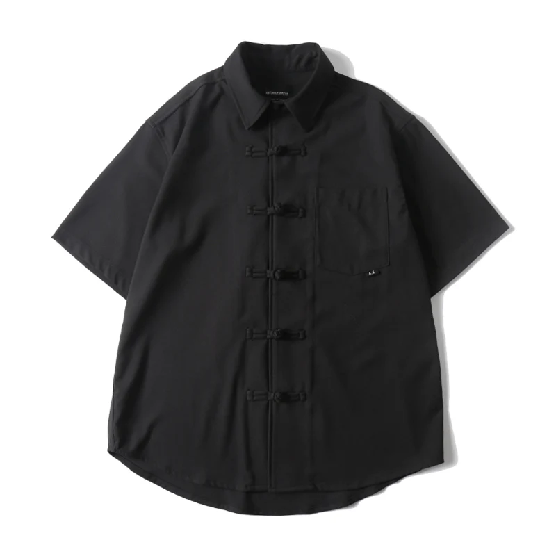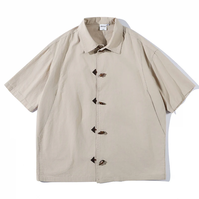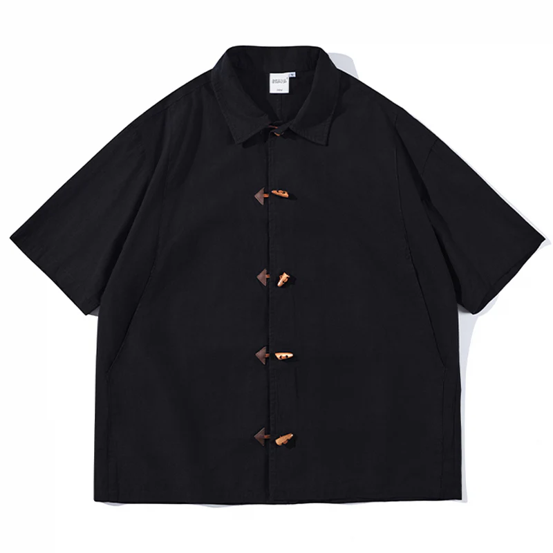 トグルボタン付き無地半袖シャツ
