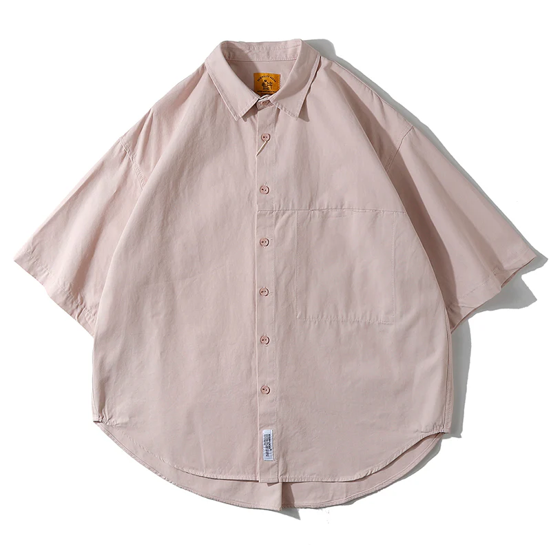 ワンポケット付きコットン半袖シャツ 全4色