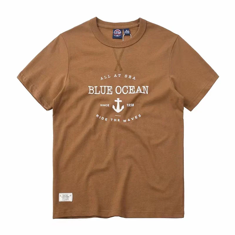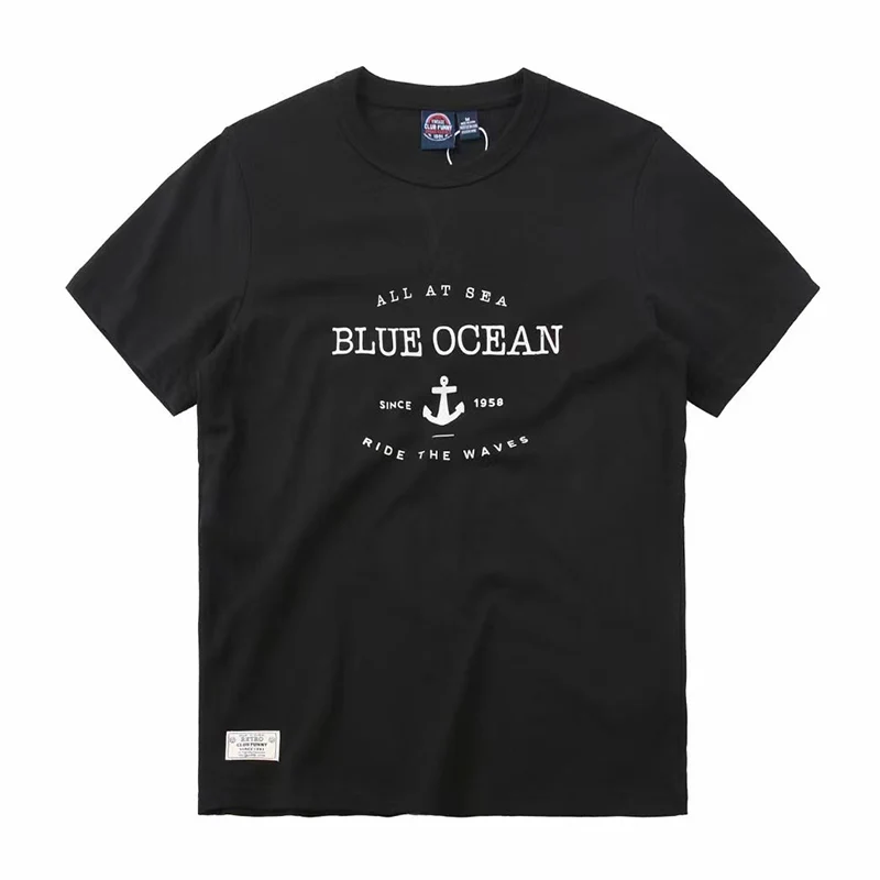 「Blue Ocean」レトロアンカー抜染プリントコットンtee