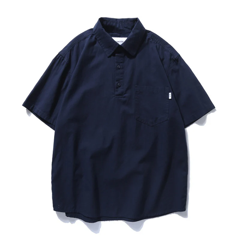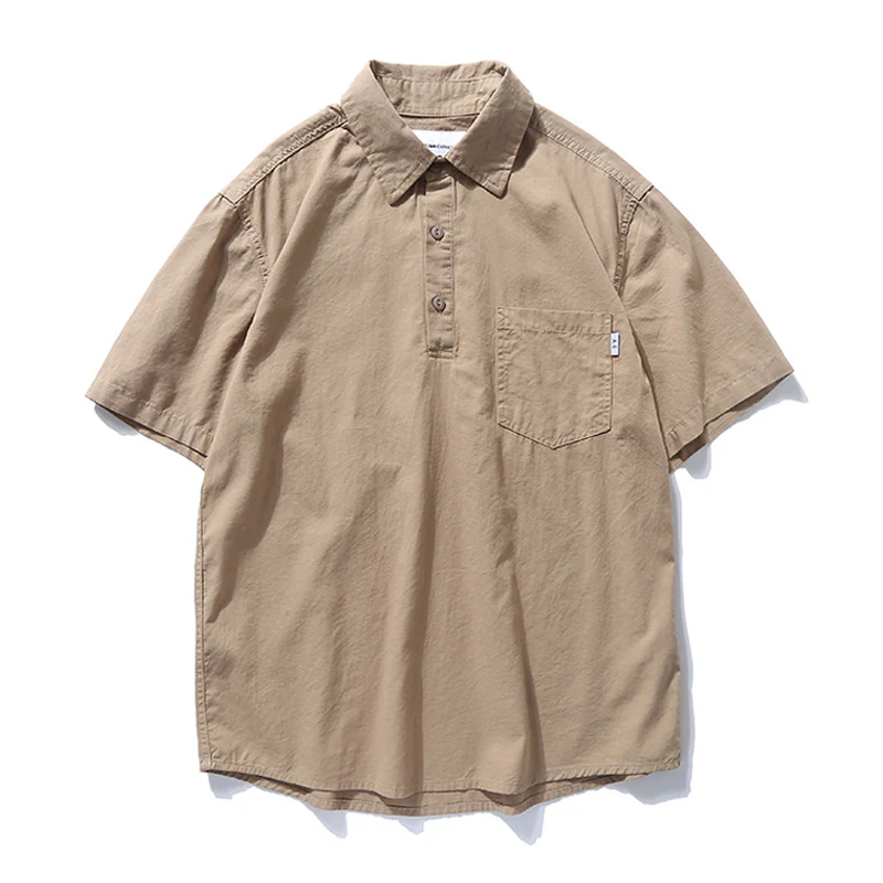 プルオーバー コットン半袖ワークシャツ
