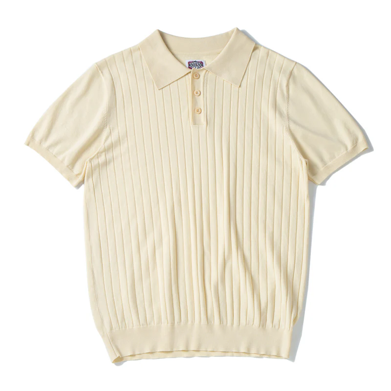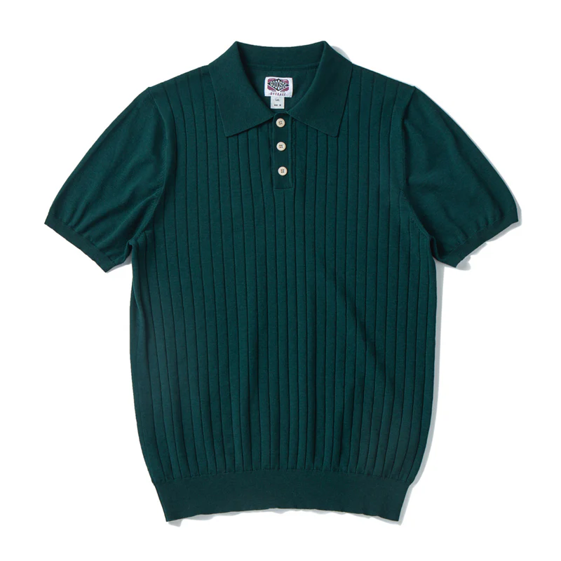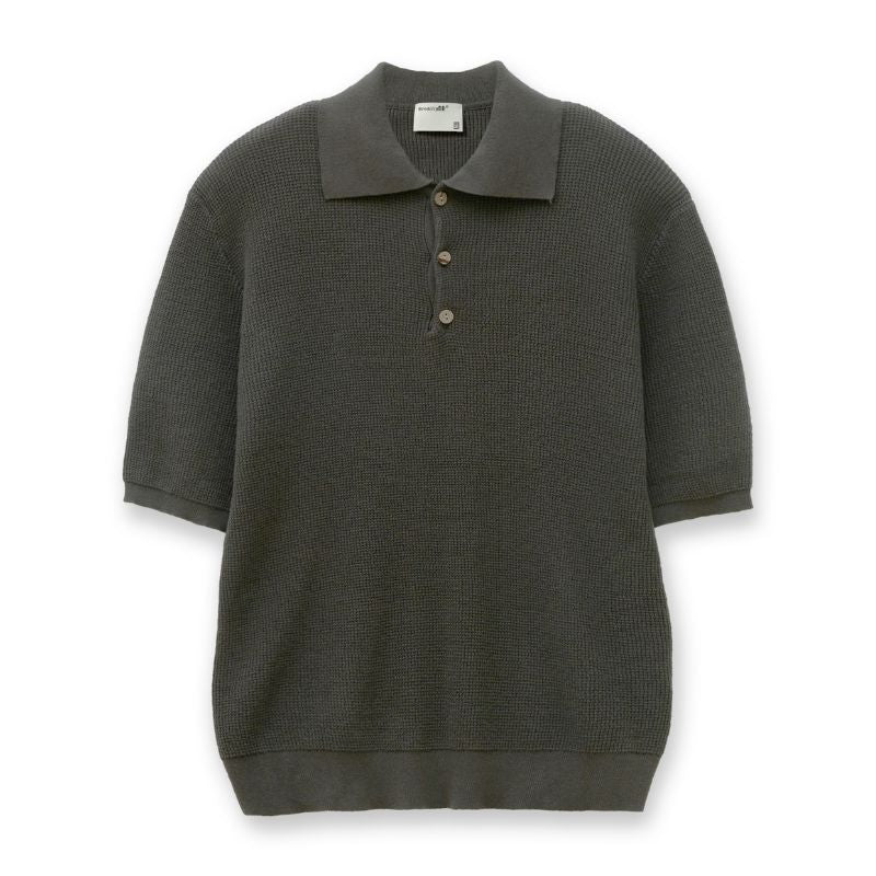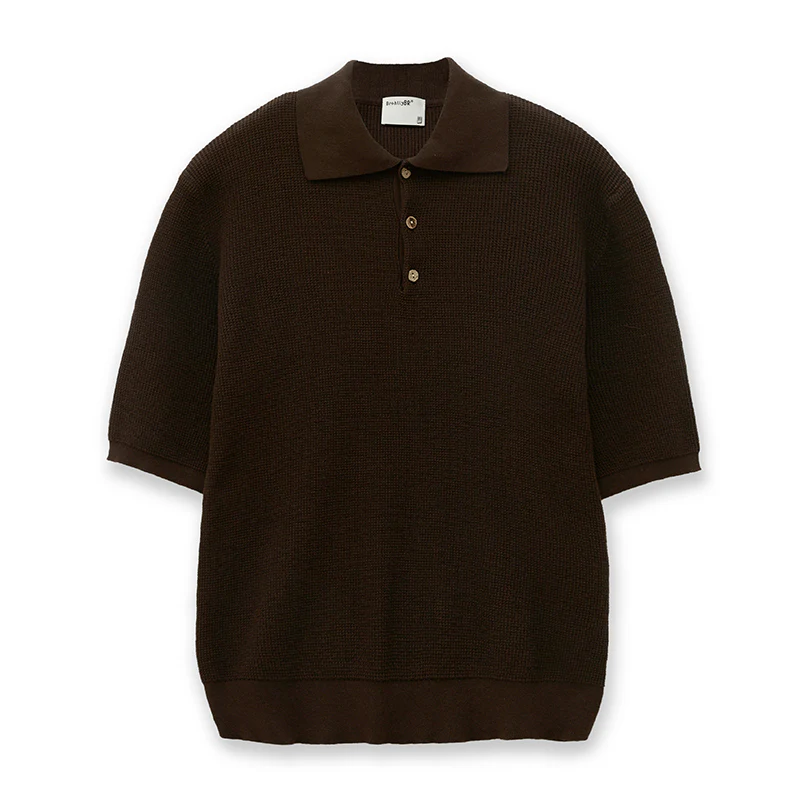 マルベリーシルク混 リブ編みニットポロシャツ