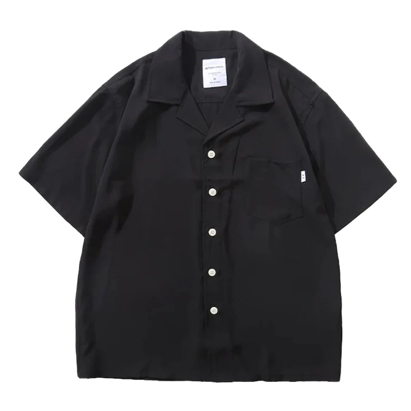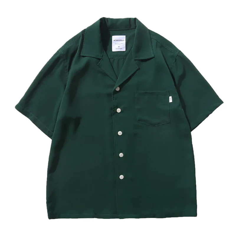 Cleanfit タグ付き無地2色オープンカラー半袖シャツ