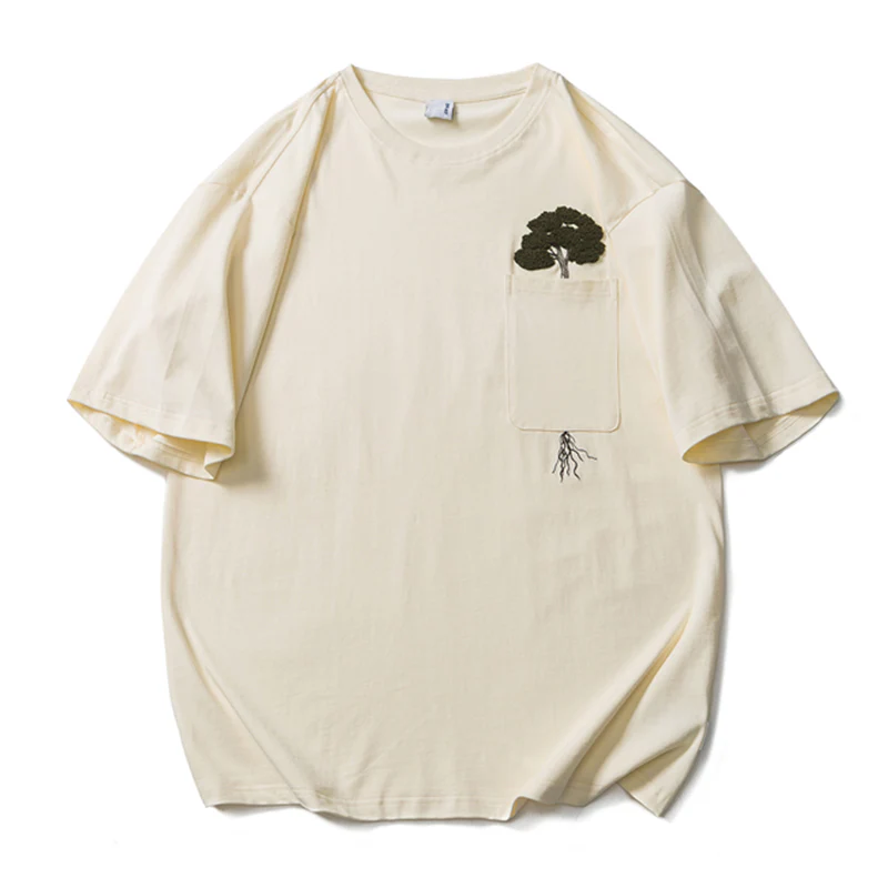 「木はポケットの中で育つ」サガラ刺繍コットンTee