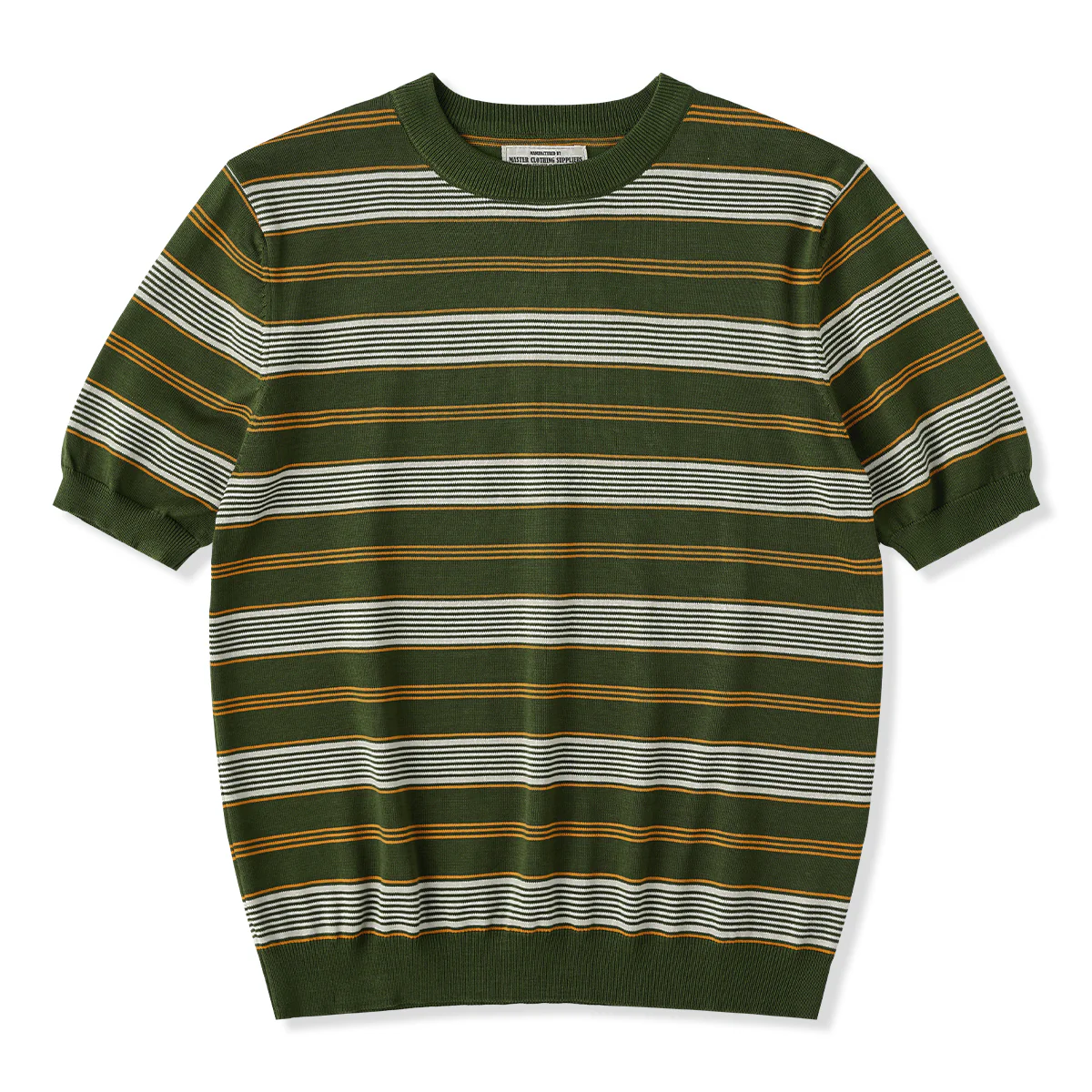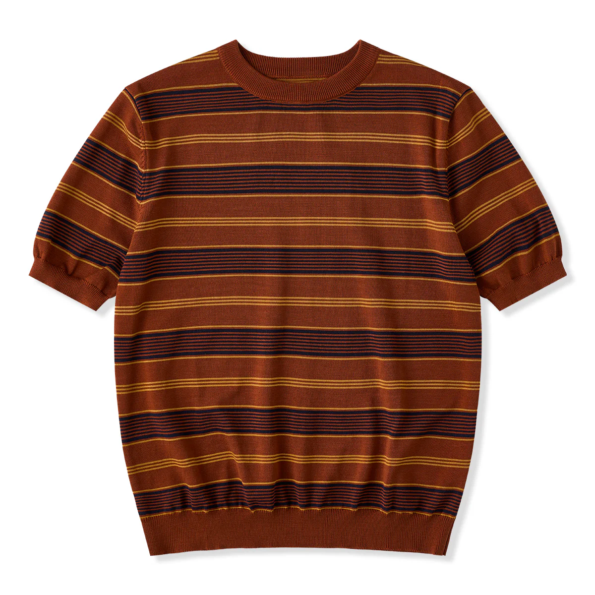ニット編みストライプ柄キューバカラーシャツ