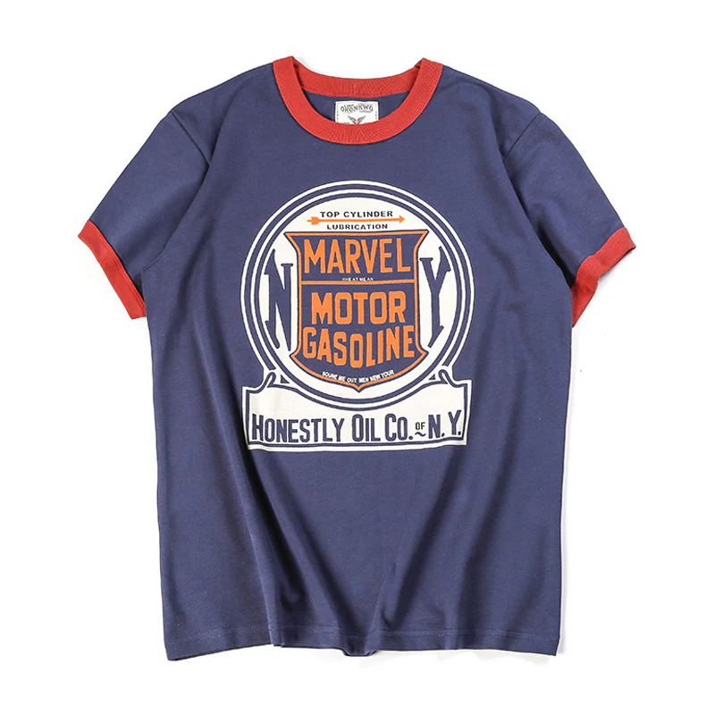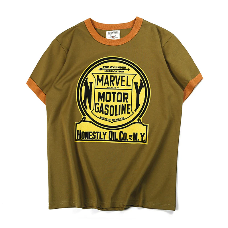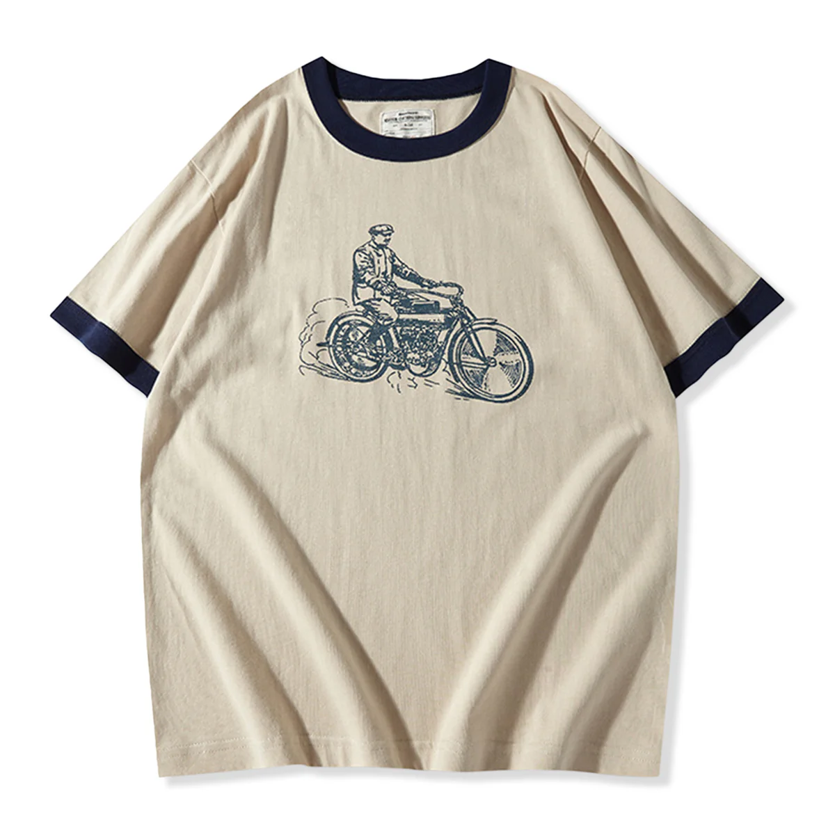 210gヘビーウェイト 手描き風バイクプリントリンガーTシャツ