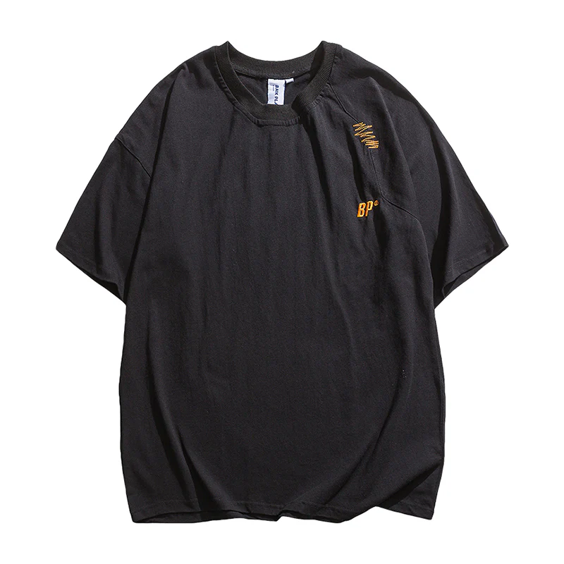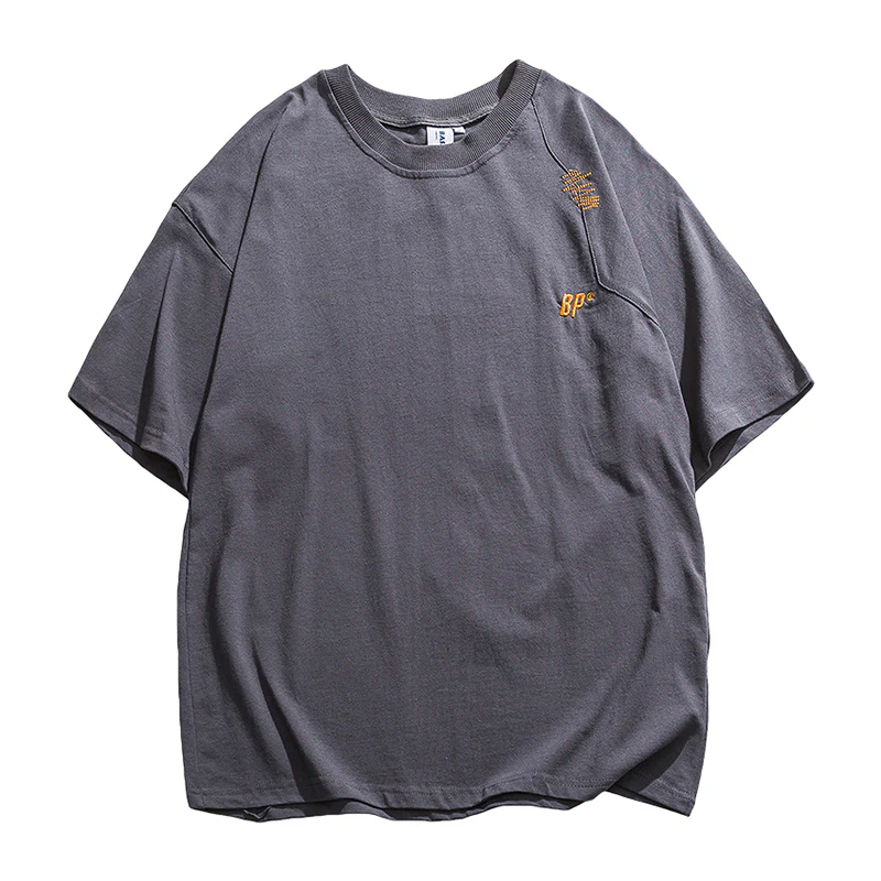 刺繡入り 不規則ステッチコットンTシャツ