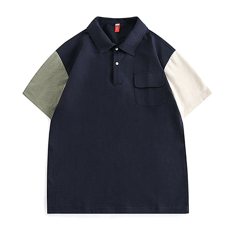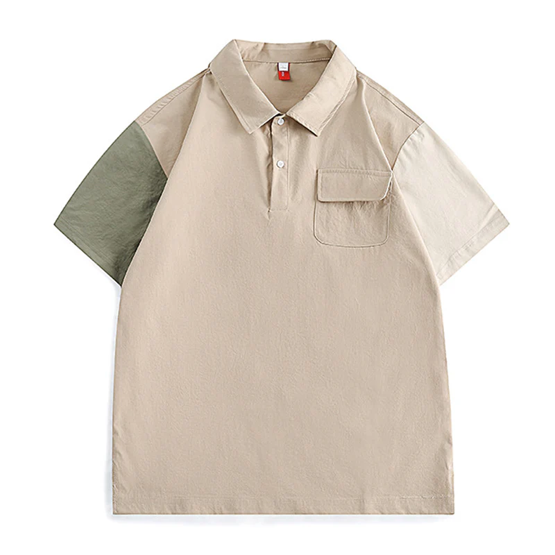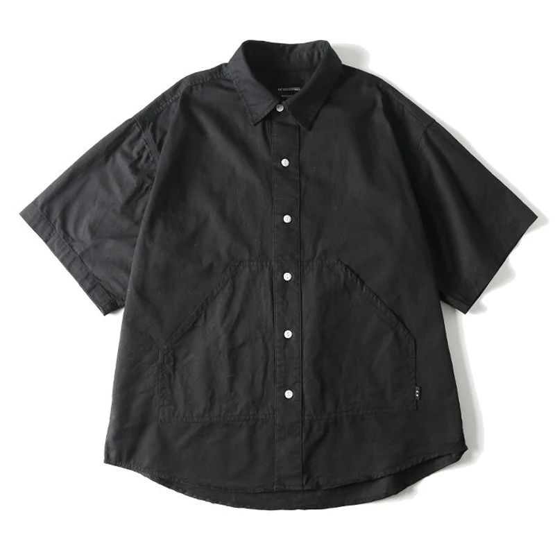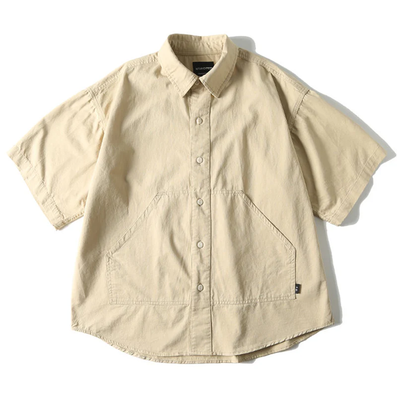 改良型カンガルーポケット ツイルコットン無地半袖シャツ