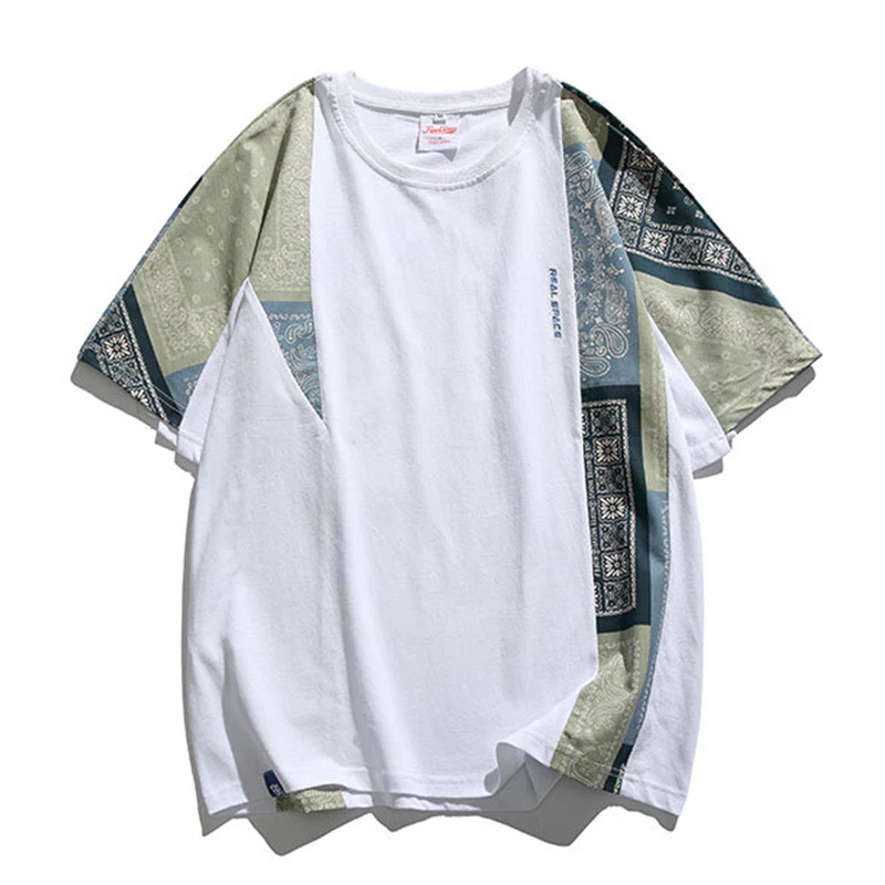 不規則ペイズリー柄切替 民族調Tシャツ