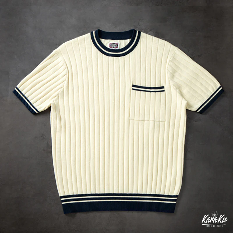 ティップライン リブ編みニットポケットTee