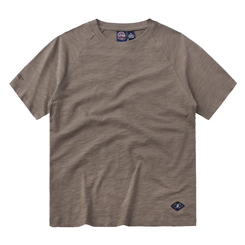 ワンポイント入り 230g スラブコットン無地ラグランスリーブtee