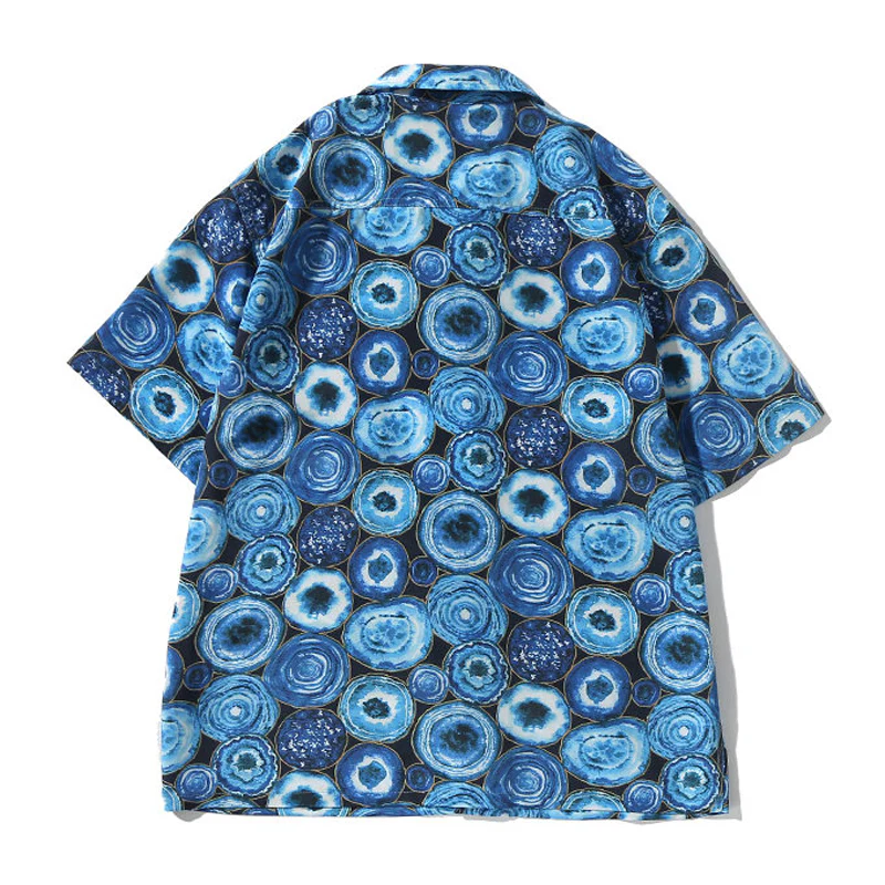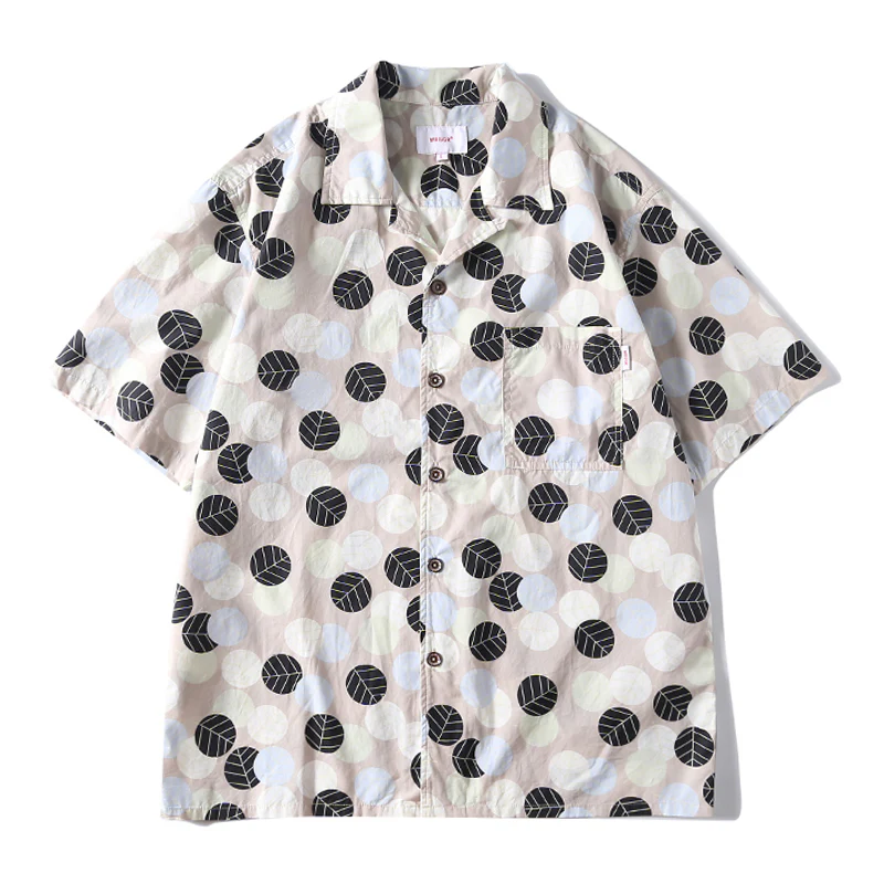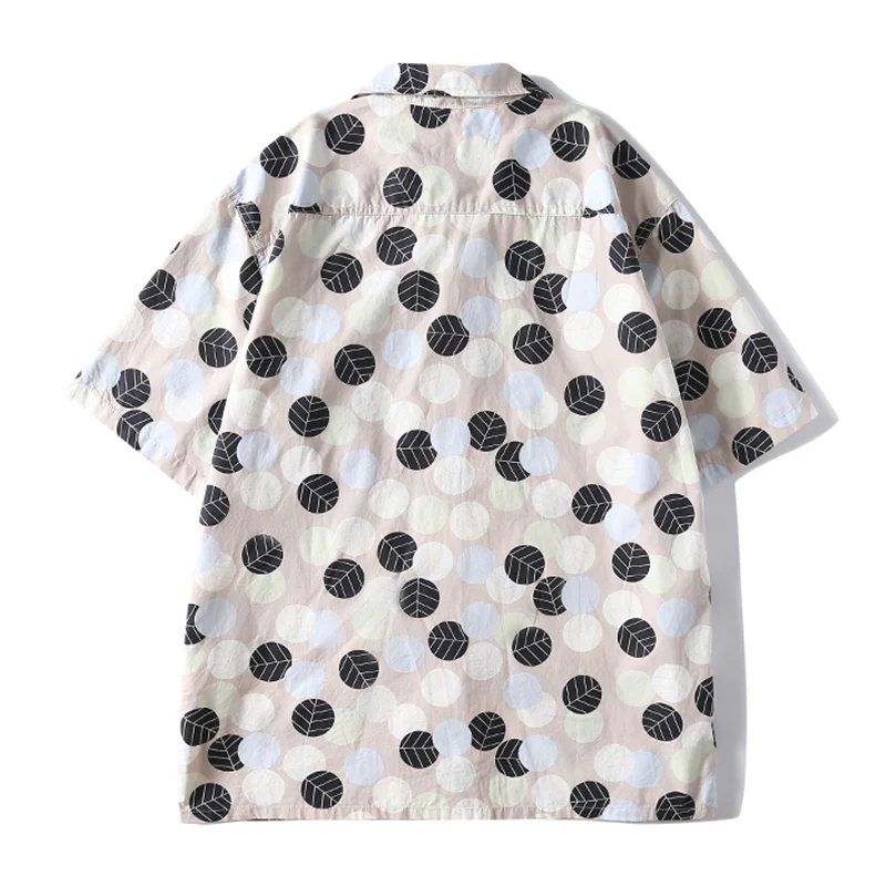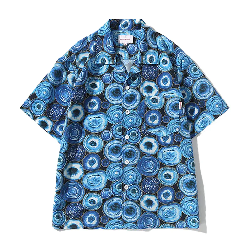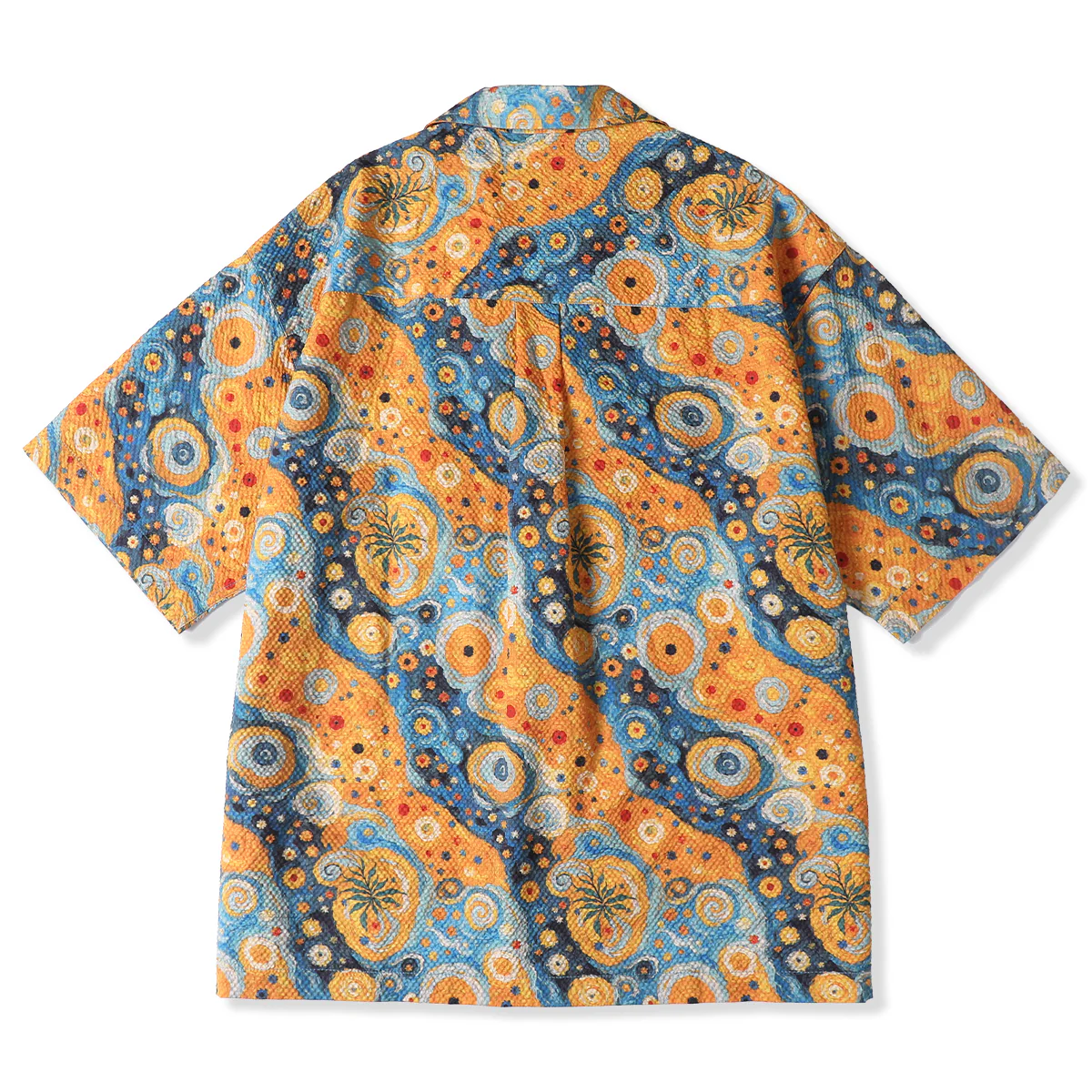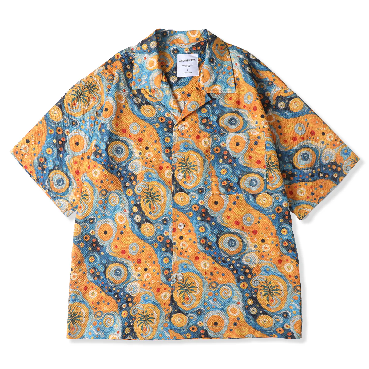 シアサッカー 「サマージュース」抽象円柄オープンカラーアロハシャツ