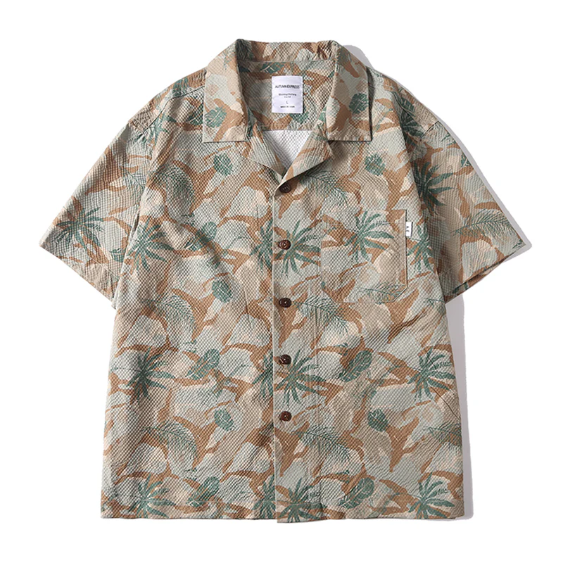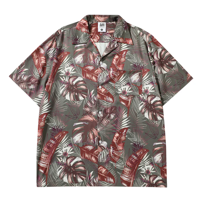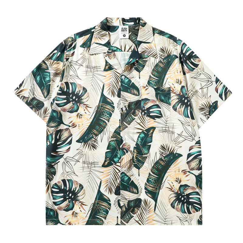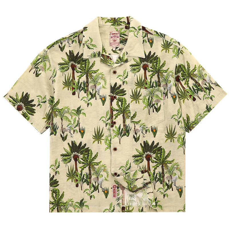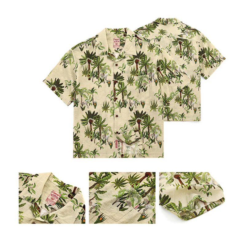 HAWAII ALOHA 熱帯植物総柄オーダーメイドシアサッカーアロハシャツ