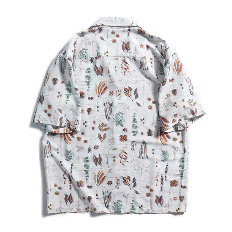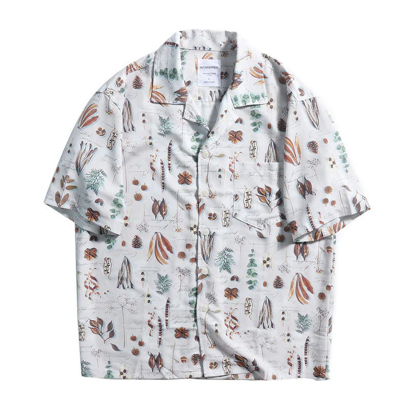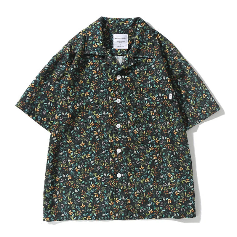 トロピカルフラワー総柄 綿麻キューバシャツ
