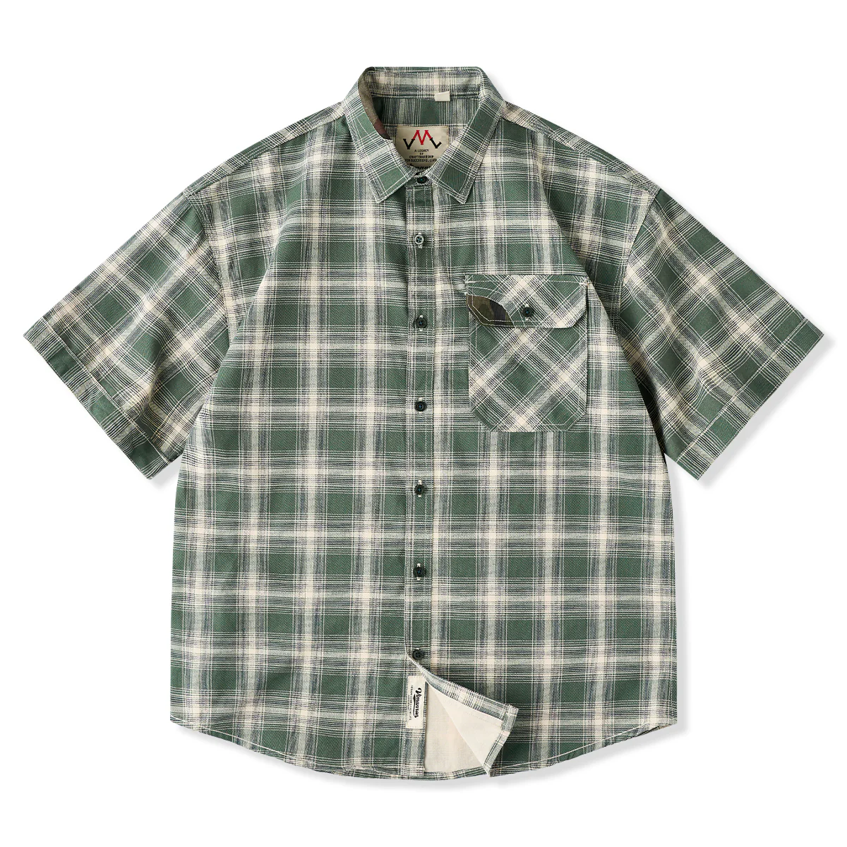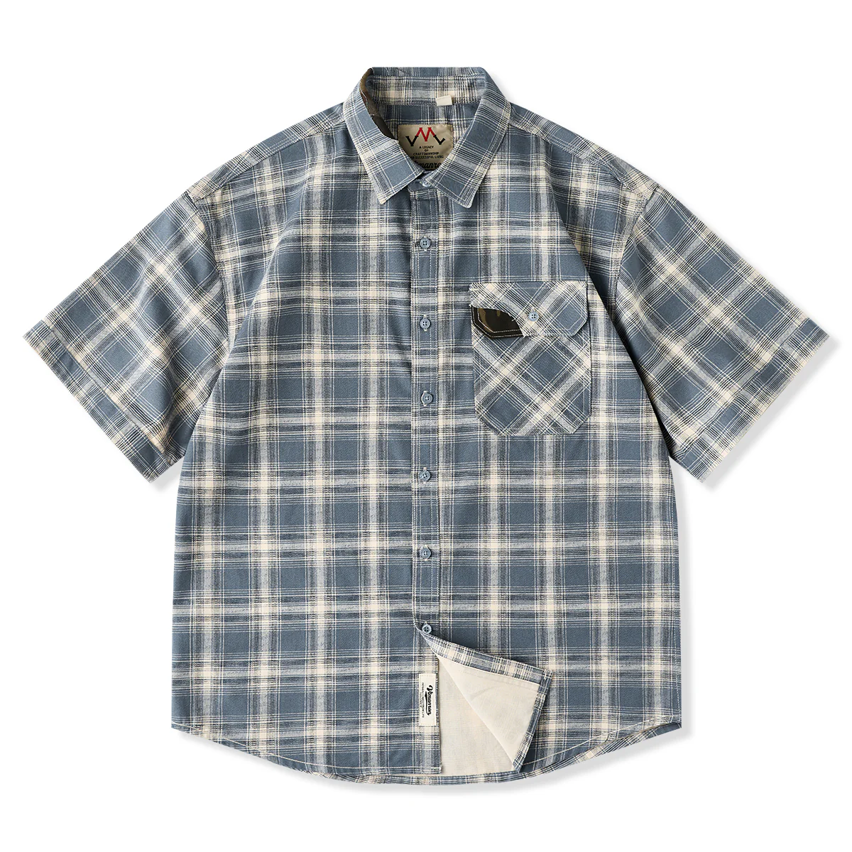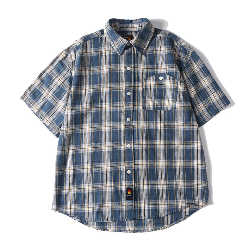 Workstyle 山ポケット付きタータンチェック柄先染め半袖ワークシャツ