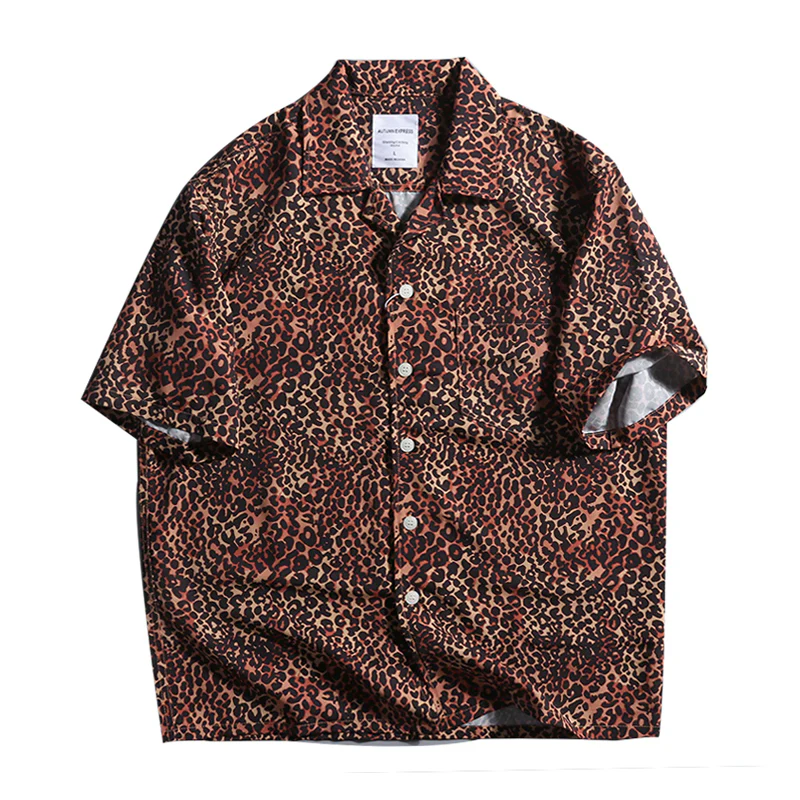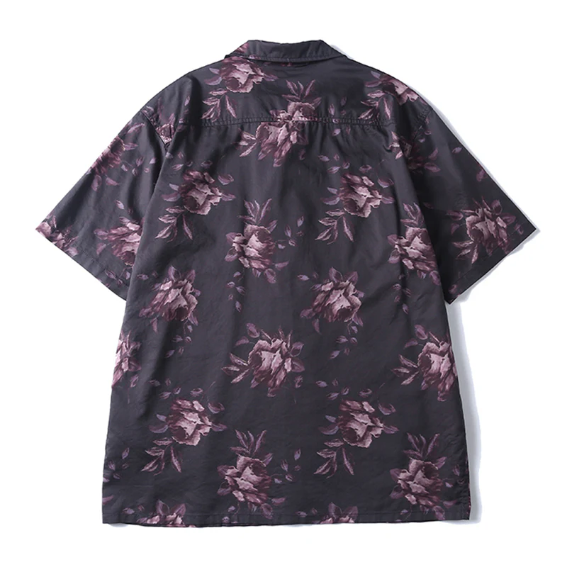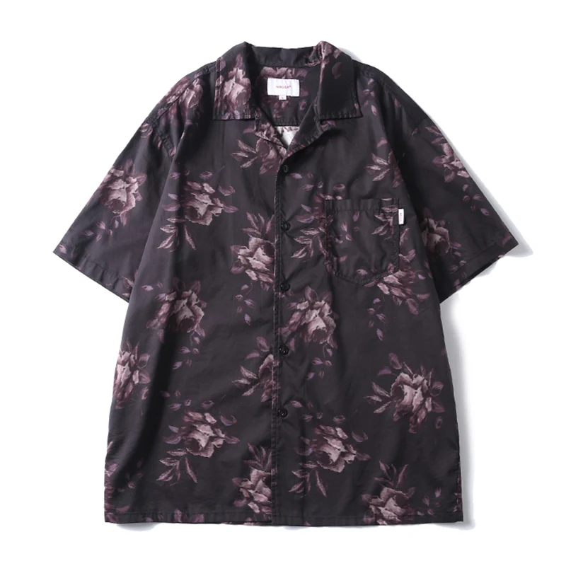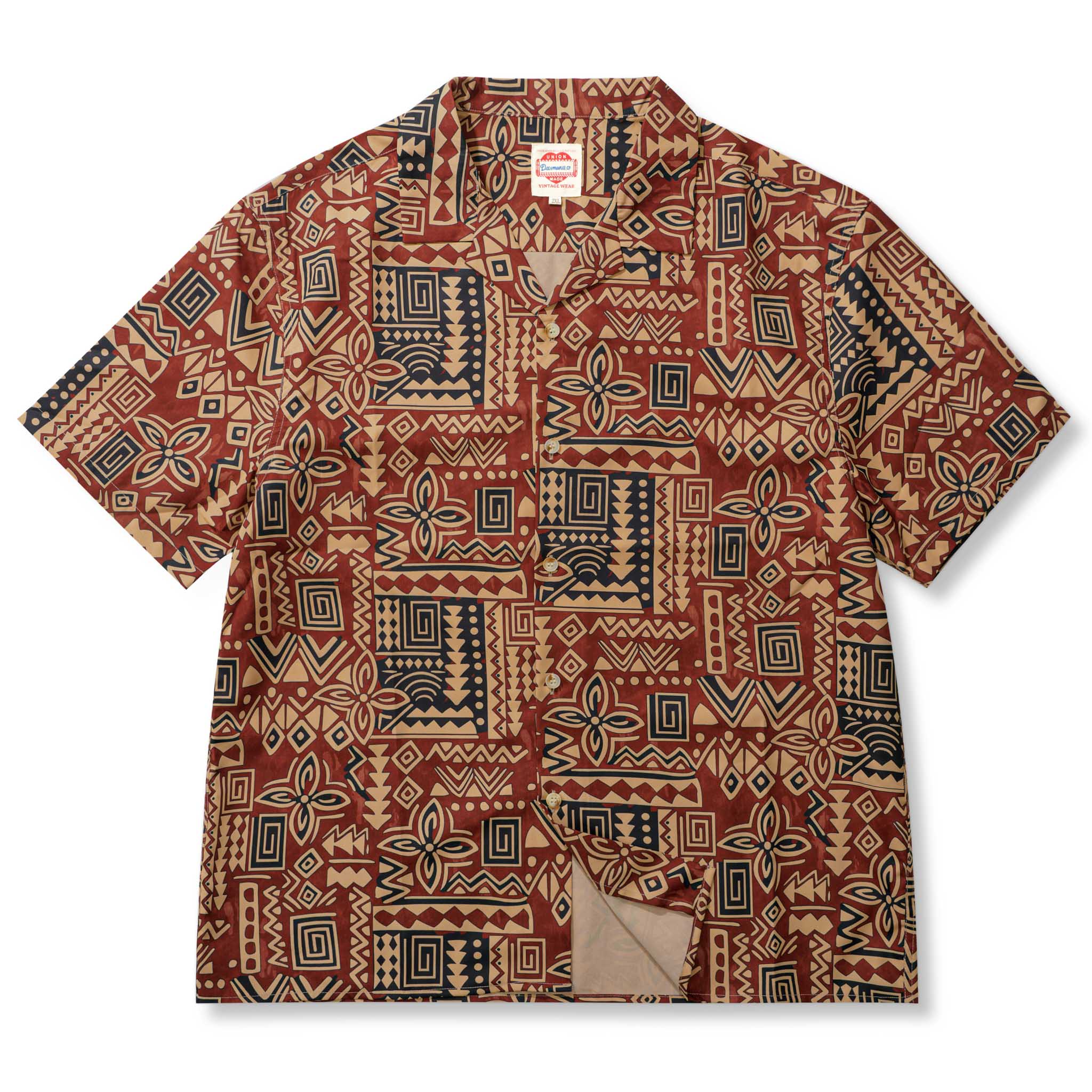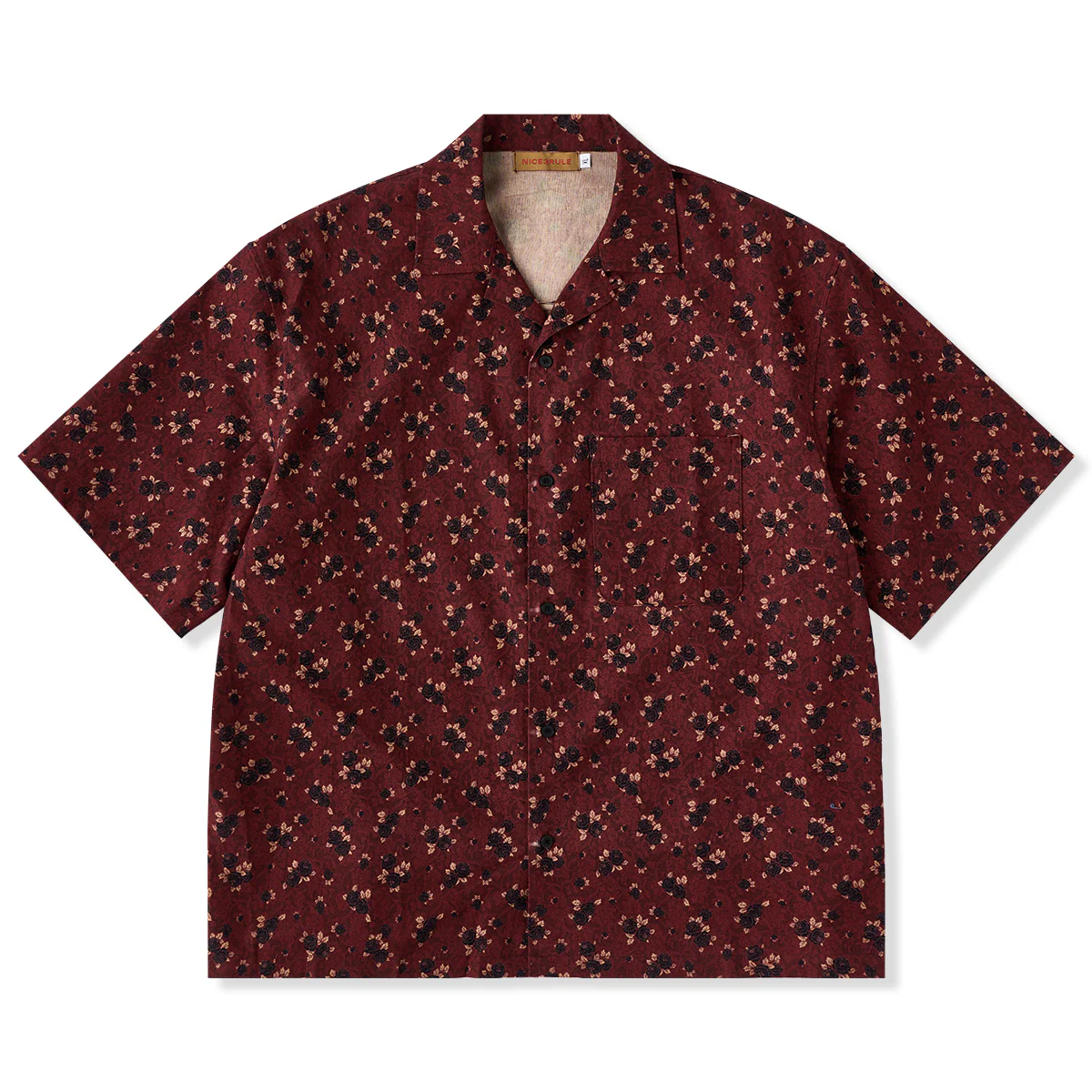ローズ小柄暗紋オープンカラーアロハシャツ