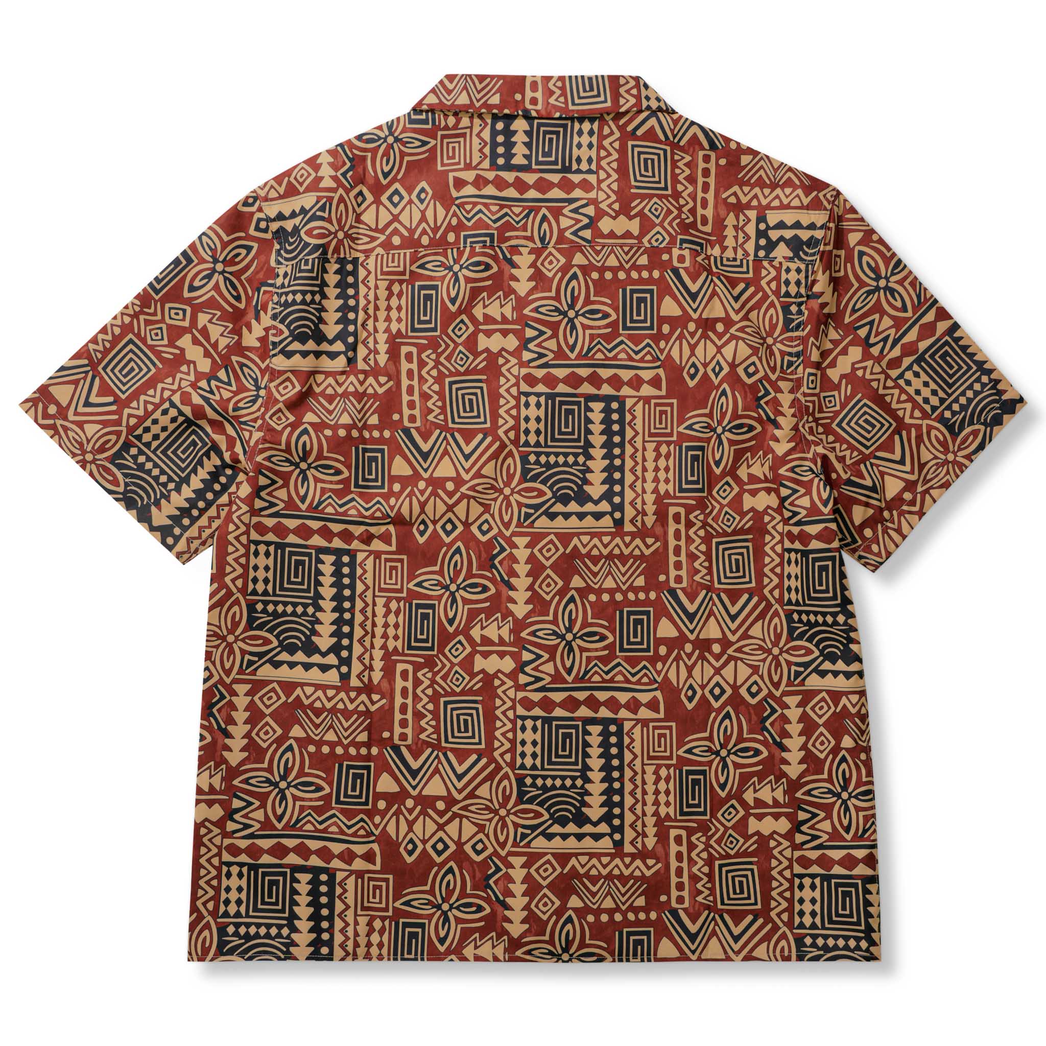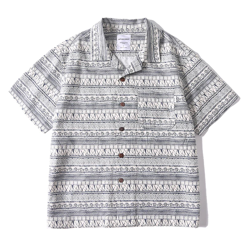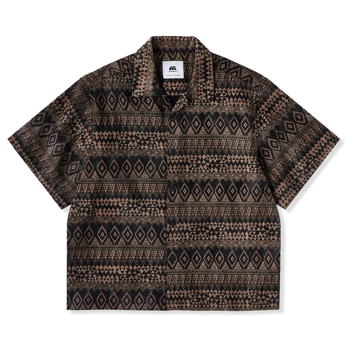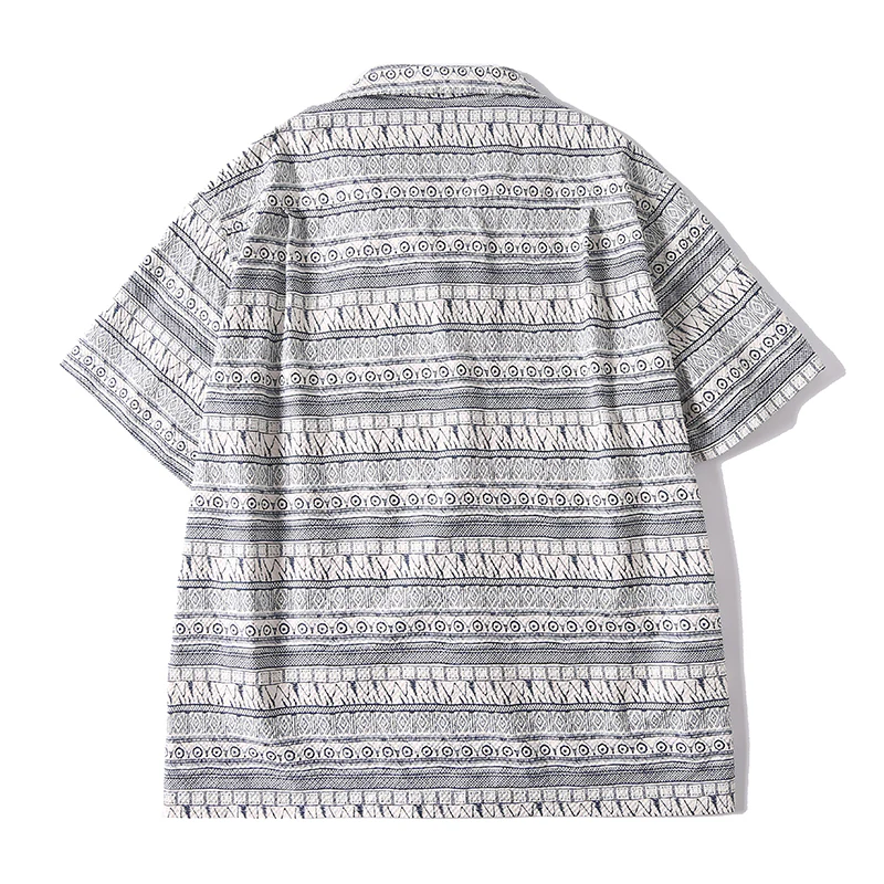 エスニック調 幾何学トーテム風オーダーメイドシアサッカーキューバシャツ