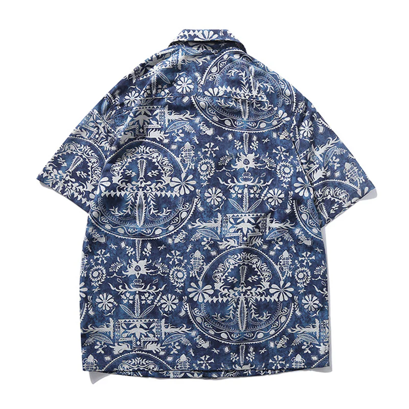 民族調総柄 オーダーメイドシアサッカー開襟シャツ