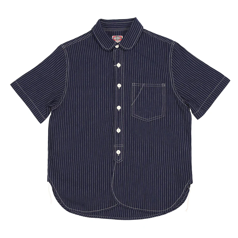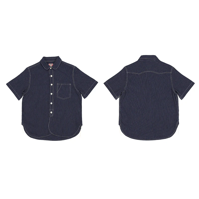 ストライプ柄&無地選べる ウォッシュド加工半袖デニムワークシャツ