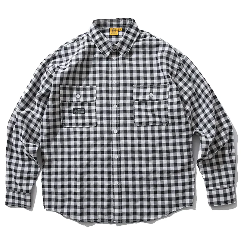 3色展開 別布切替コットンチェック柄ワークシャツ