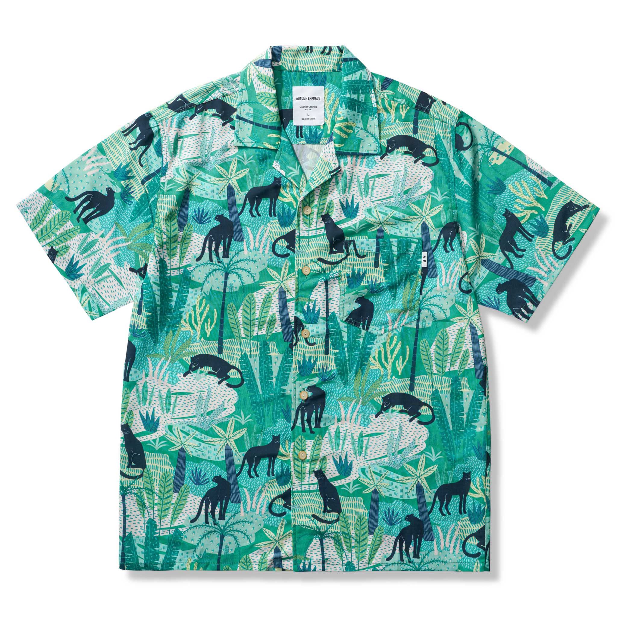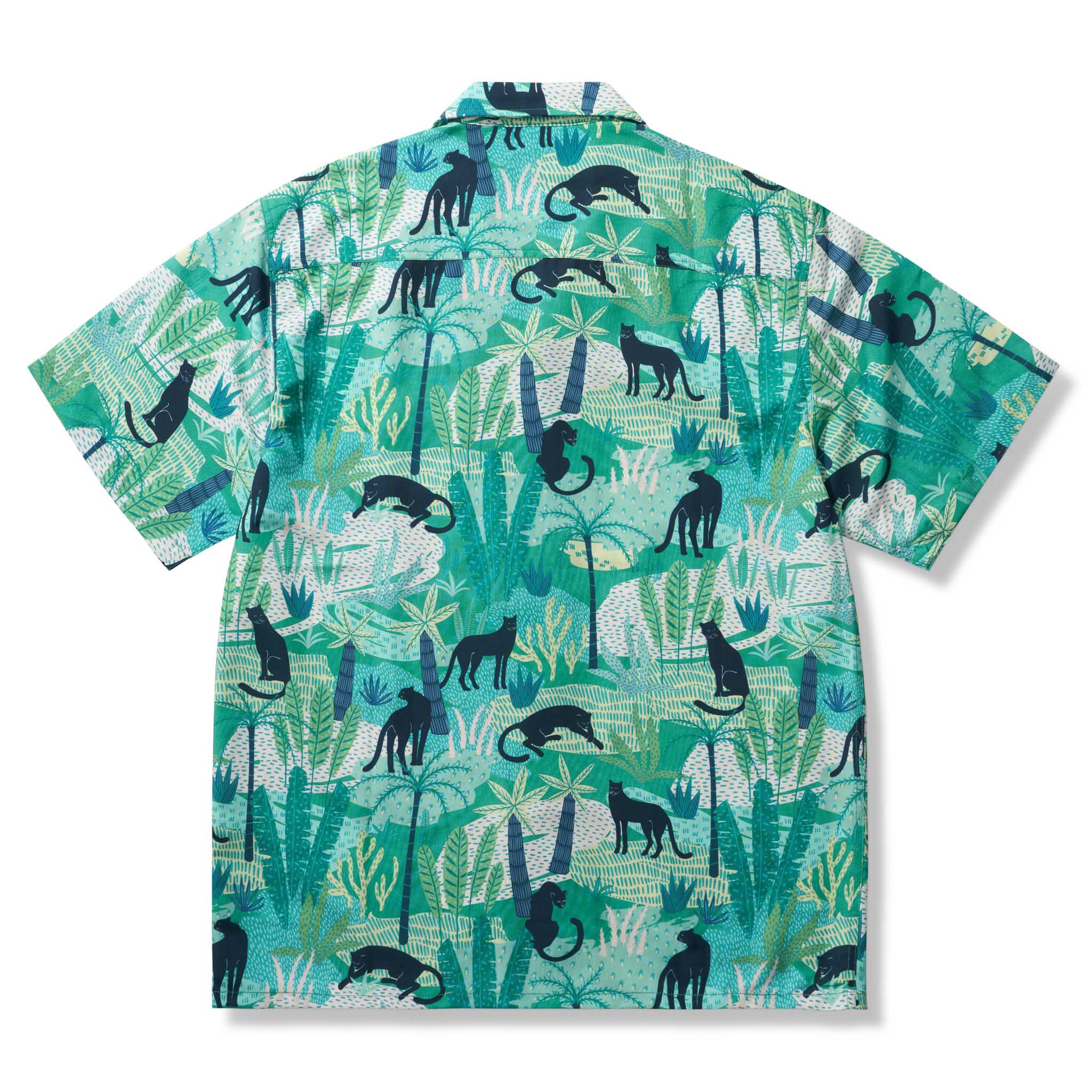 熱帯雨林のクロネコたち総柄アロハシャツ