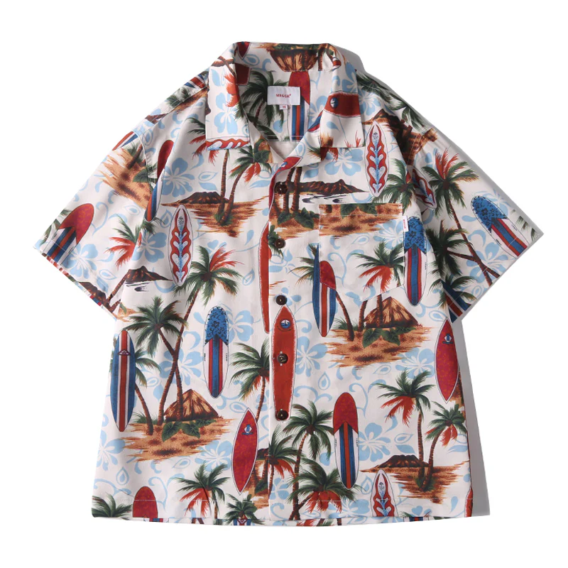 HAWAII ALOHA 「サーフボード&ヤシの木」アロハシャツ