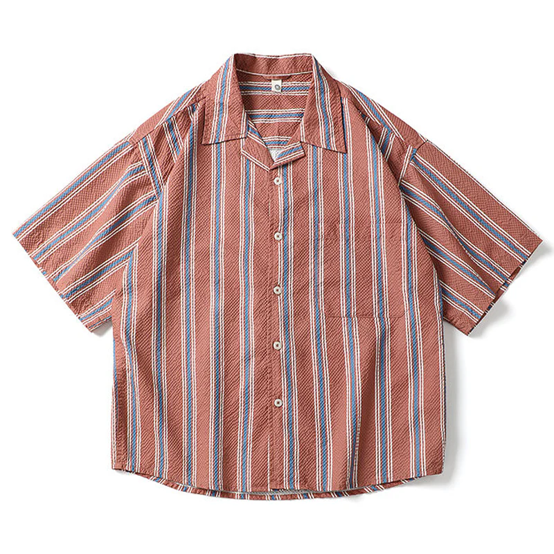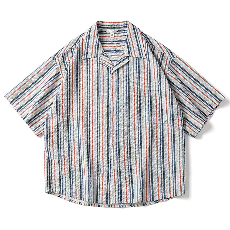 Special Summer シアサッカー生地マルチストライプ柄キューバシャツ