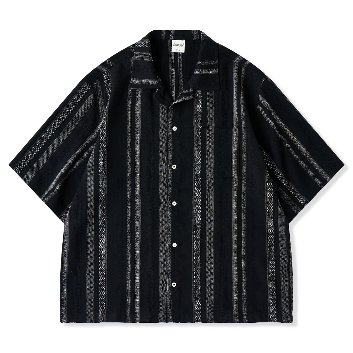 3色展開 ジャガード織ストライプコットンキューバシャツ