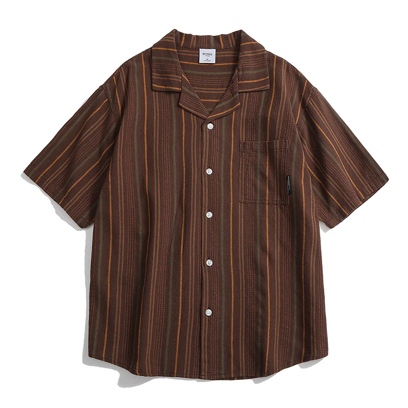 ビンテージライク マルチストライプ柄キューバーシャツ