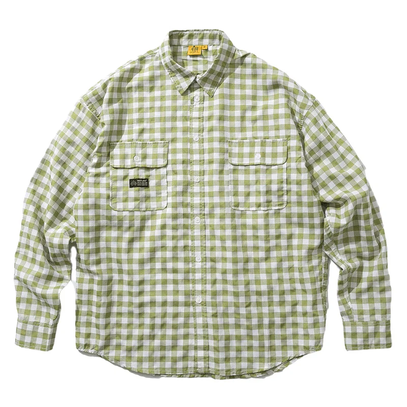 アイビールック フラップポケット付きギンガムチェック柄長袖シャツ