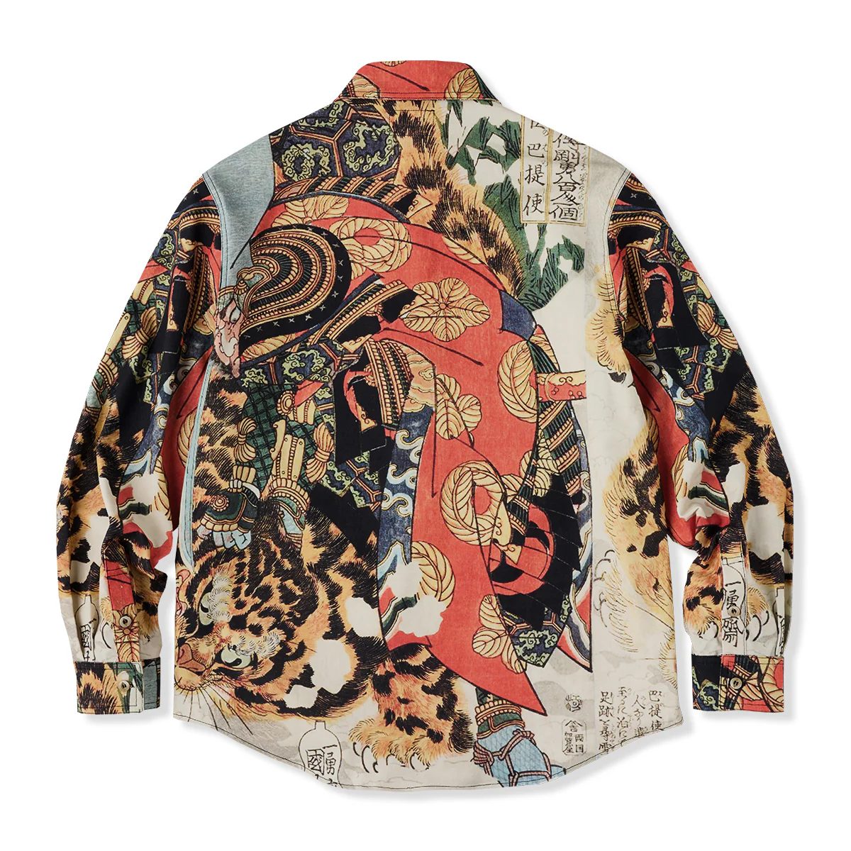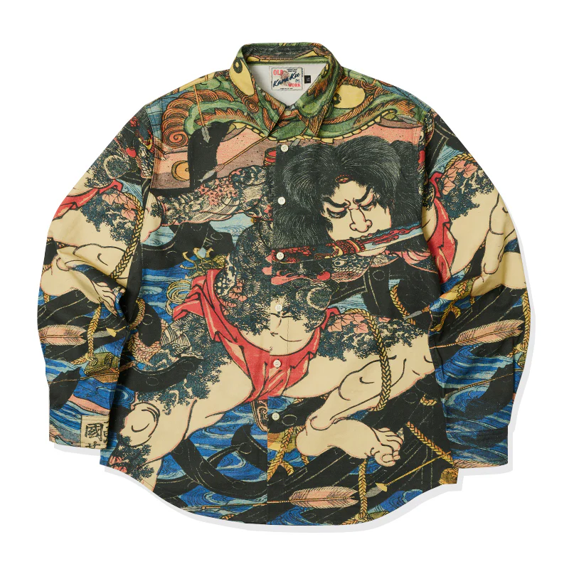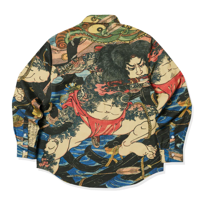 「通俗水滸伝豪傑百八人之壱人・浪裡白跳張順」浮世絵柄長袖シャツ