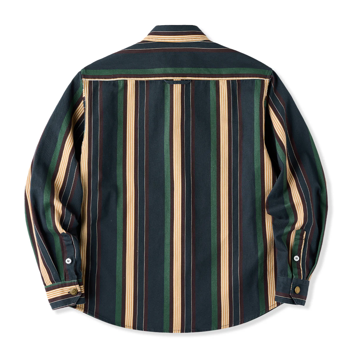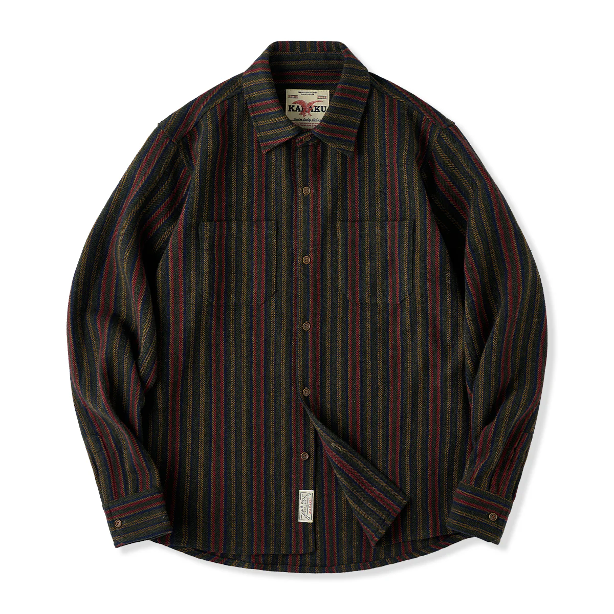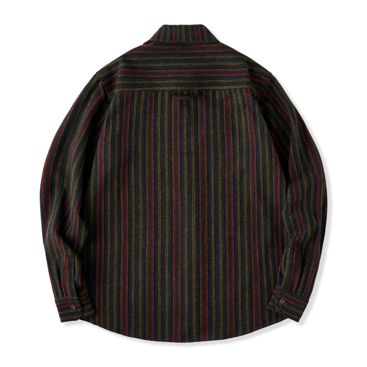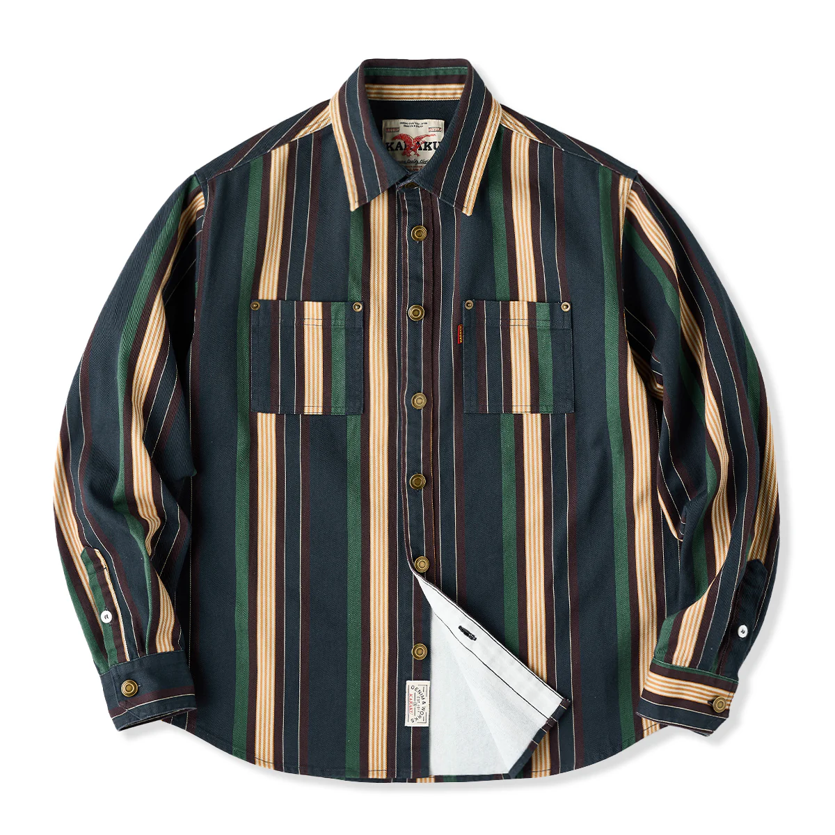 カシメポケット付き 先染めマルチストライプ柄長袖シャツ