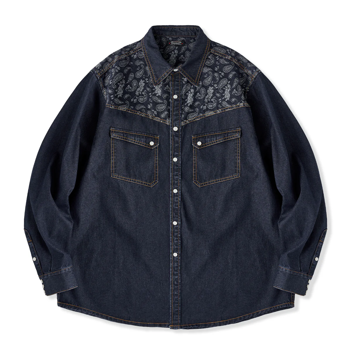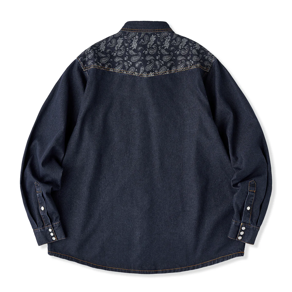ジャガードペイズリー切替 デニムウエスタンシャツ