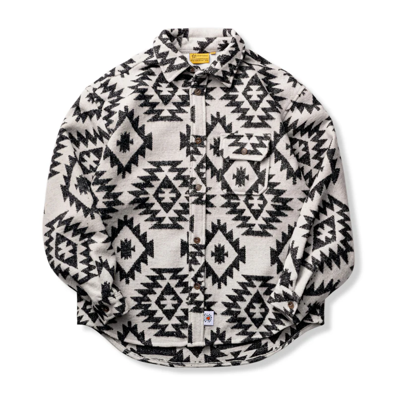 ワントーン NAVAJO総柄ウール混ツイードオーバーシャツ