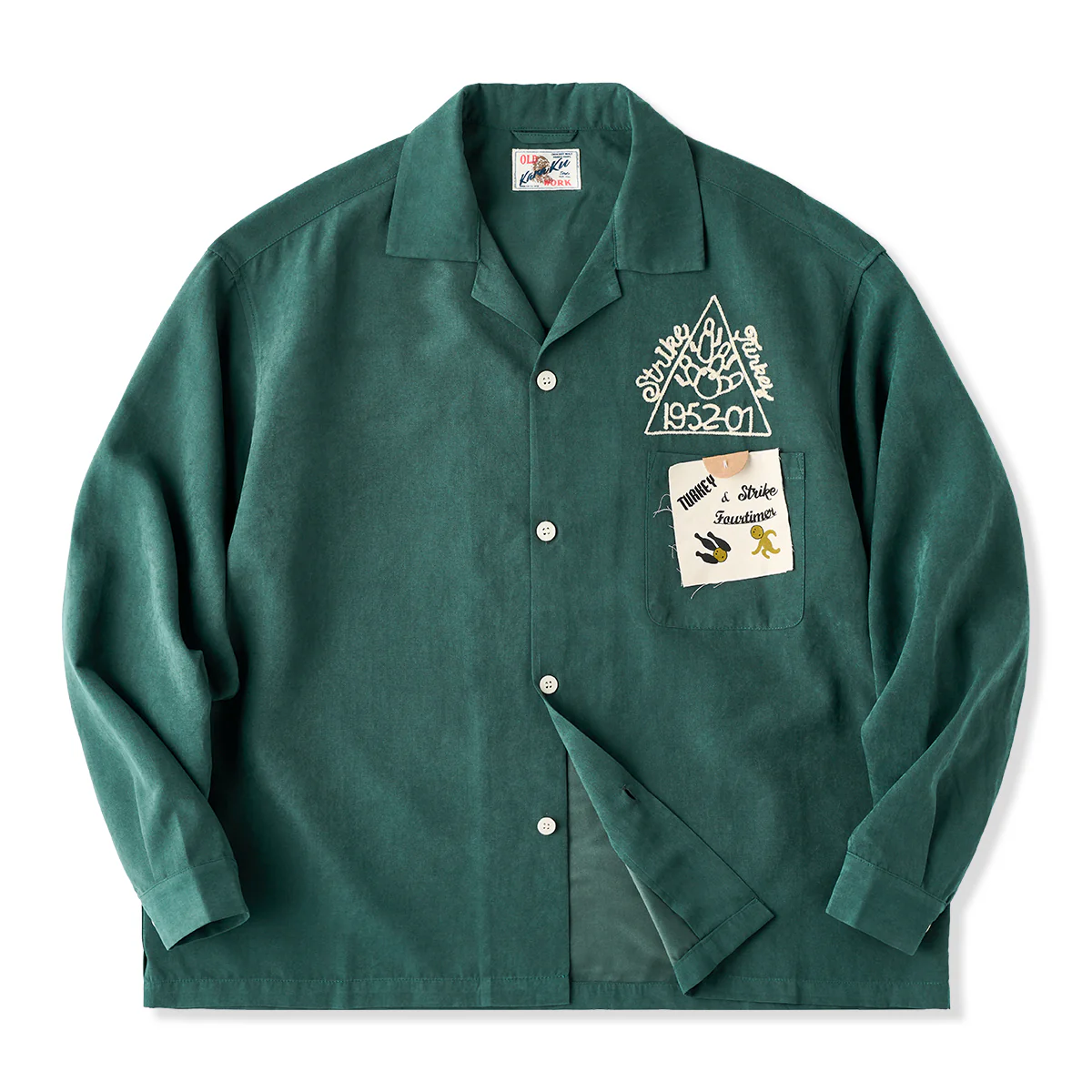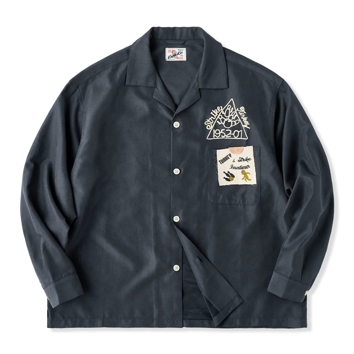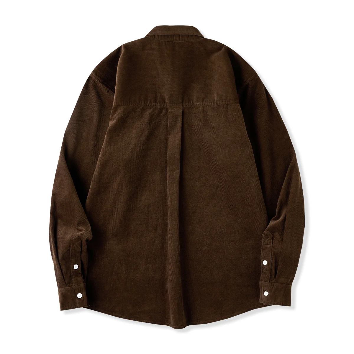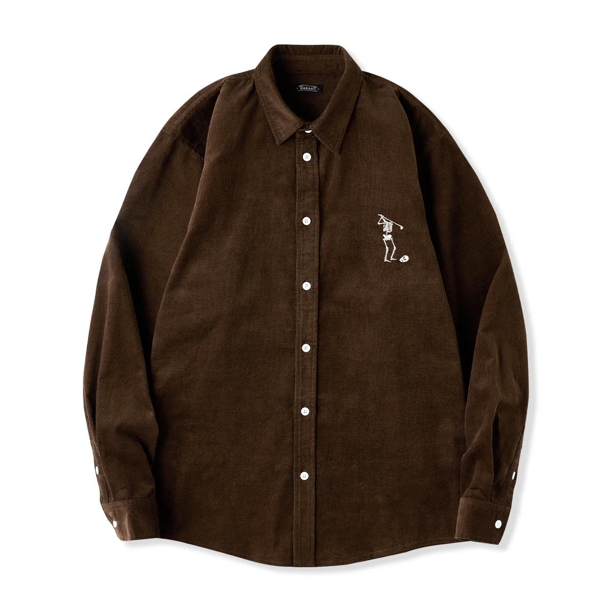 細畝コーデュロイ 「ゴルフスイングの首が落ちた骸骨」刺繍入り長袖シャツ
