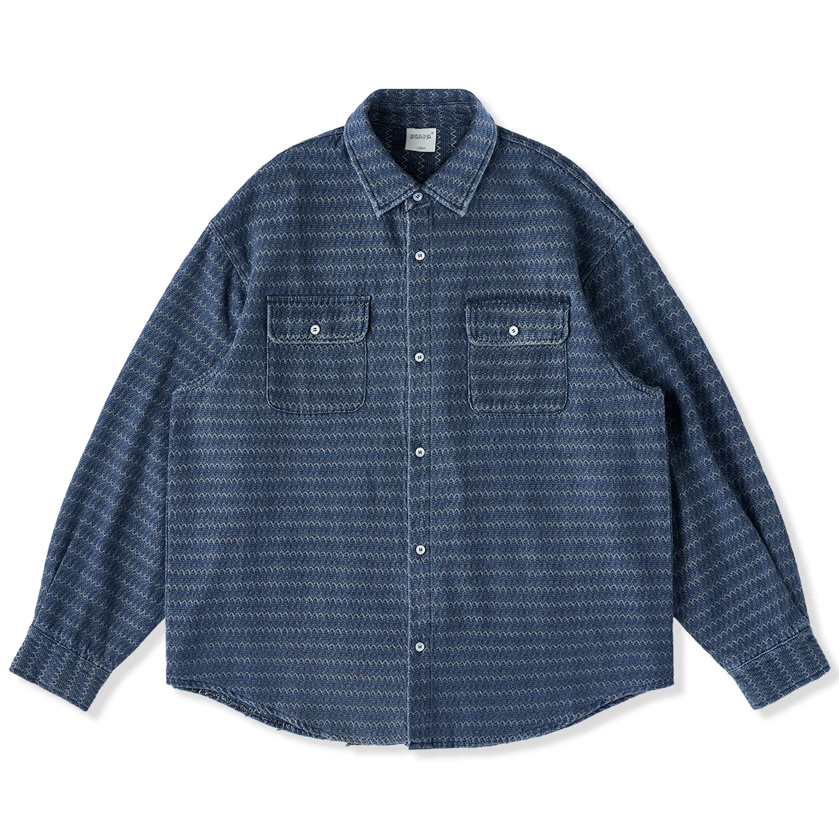 モンキーワッシュ加工 ダイヤジャカード織りデニムシャツ