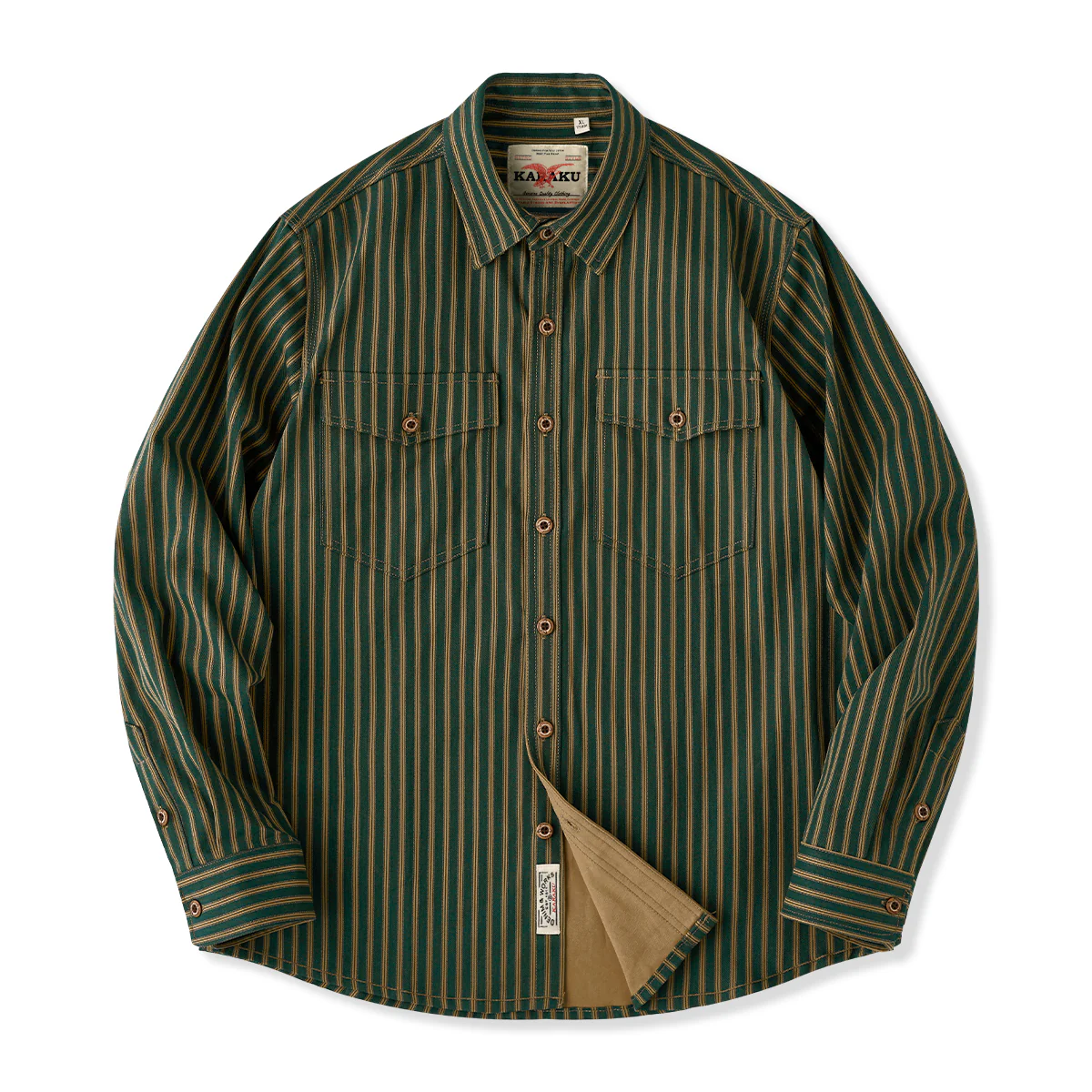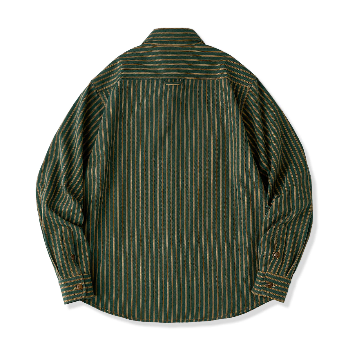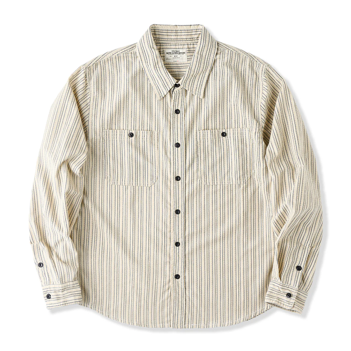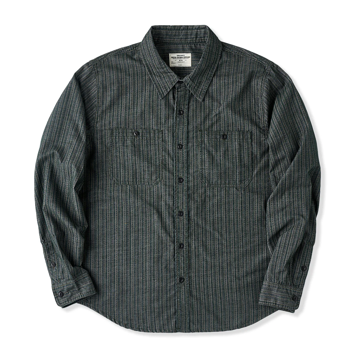 ユーズド風ボタン付き レトロ調ストライプ柄ジャカード織りワークシャツ