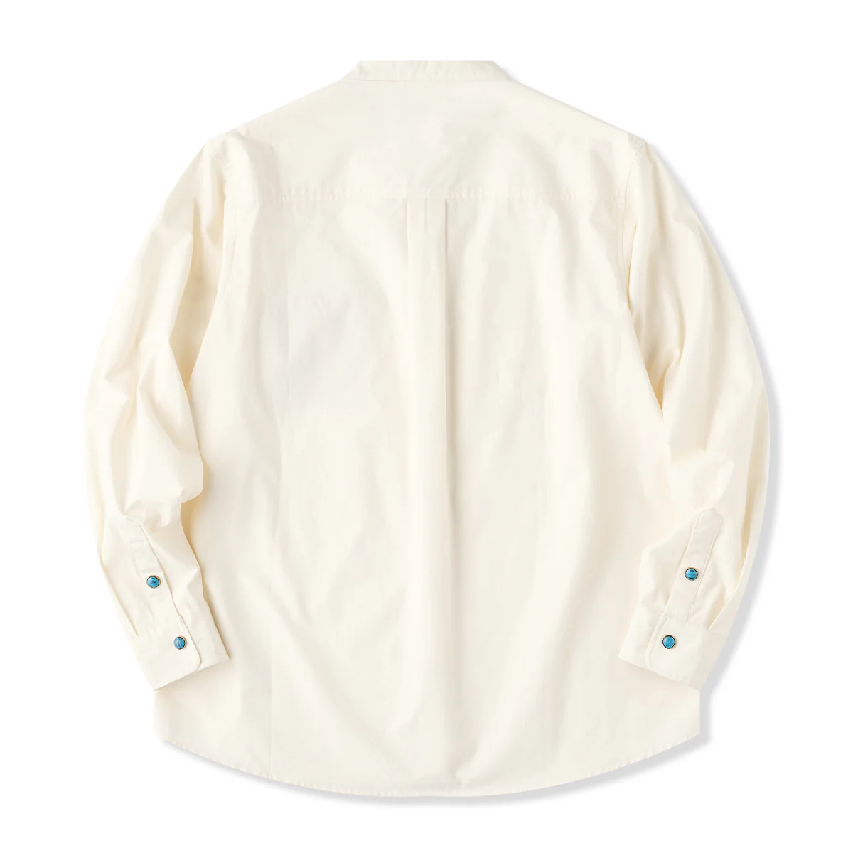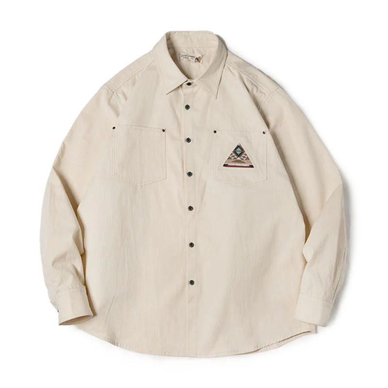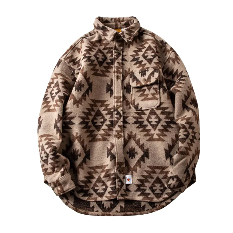 レトロアメリカインディアントーテムステッチポケット長袖シャツ