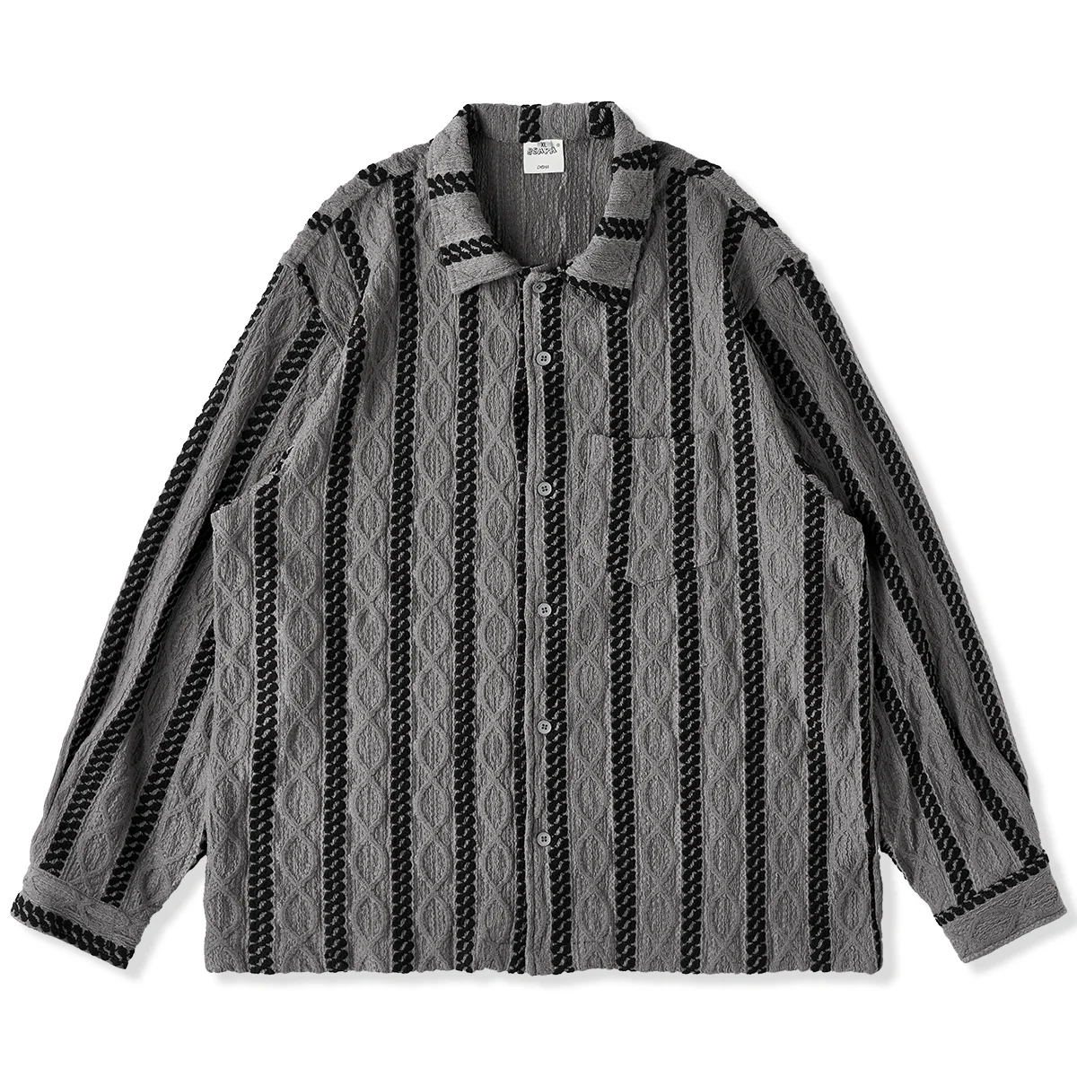 ジャカードストライプ柄レースオープンカラー長袖シャツ
