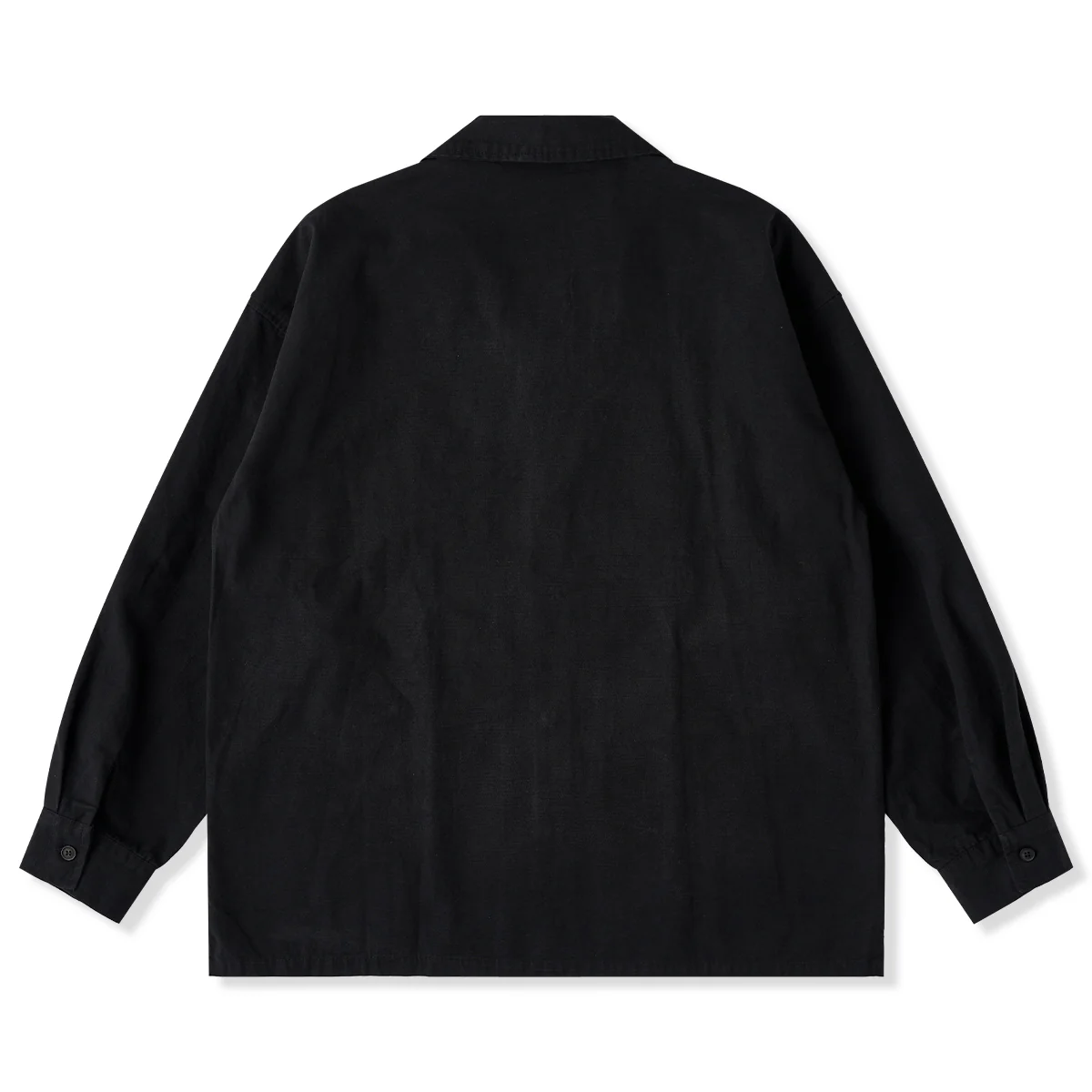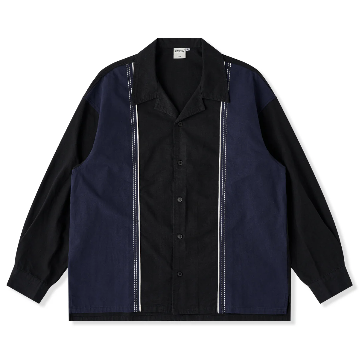 飾りステッチ ツートン配色切替オープンカラー長袖シャツ