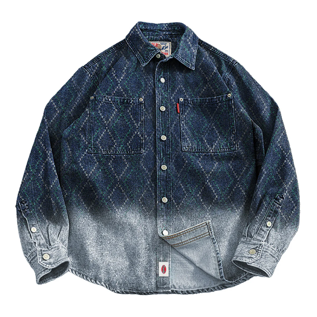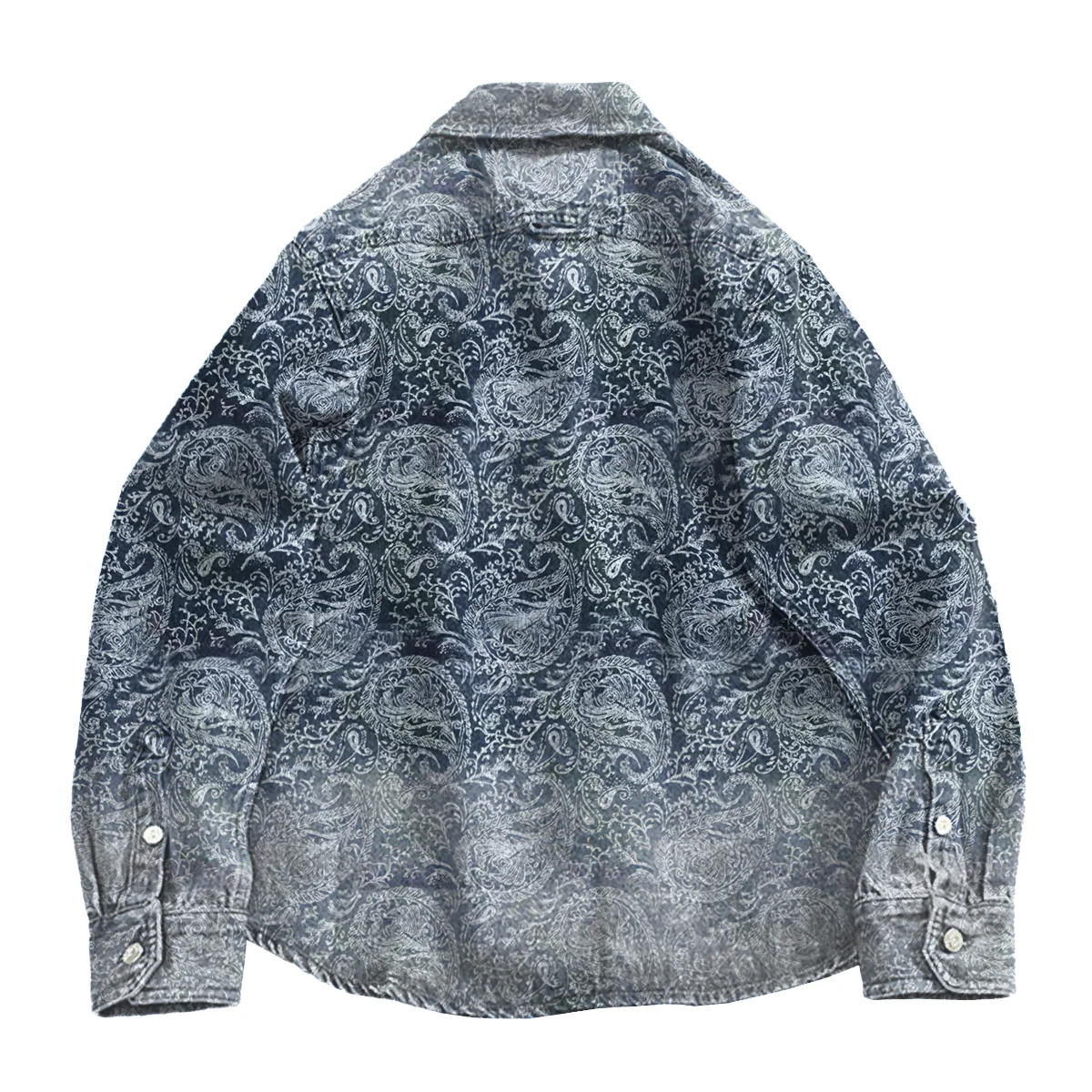 グラデーション ペイズリー柄ジャカード織りデニムワークシャツ