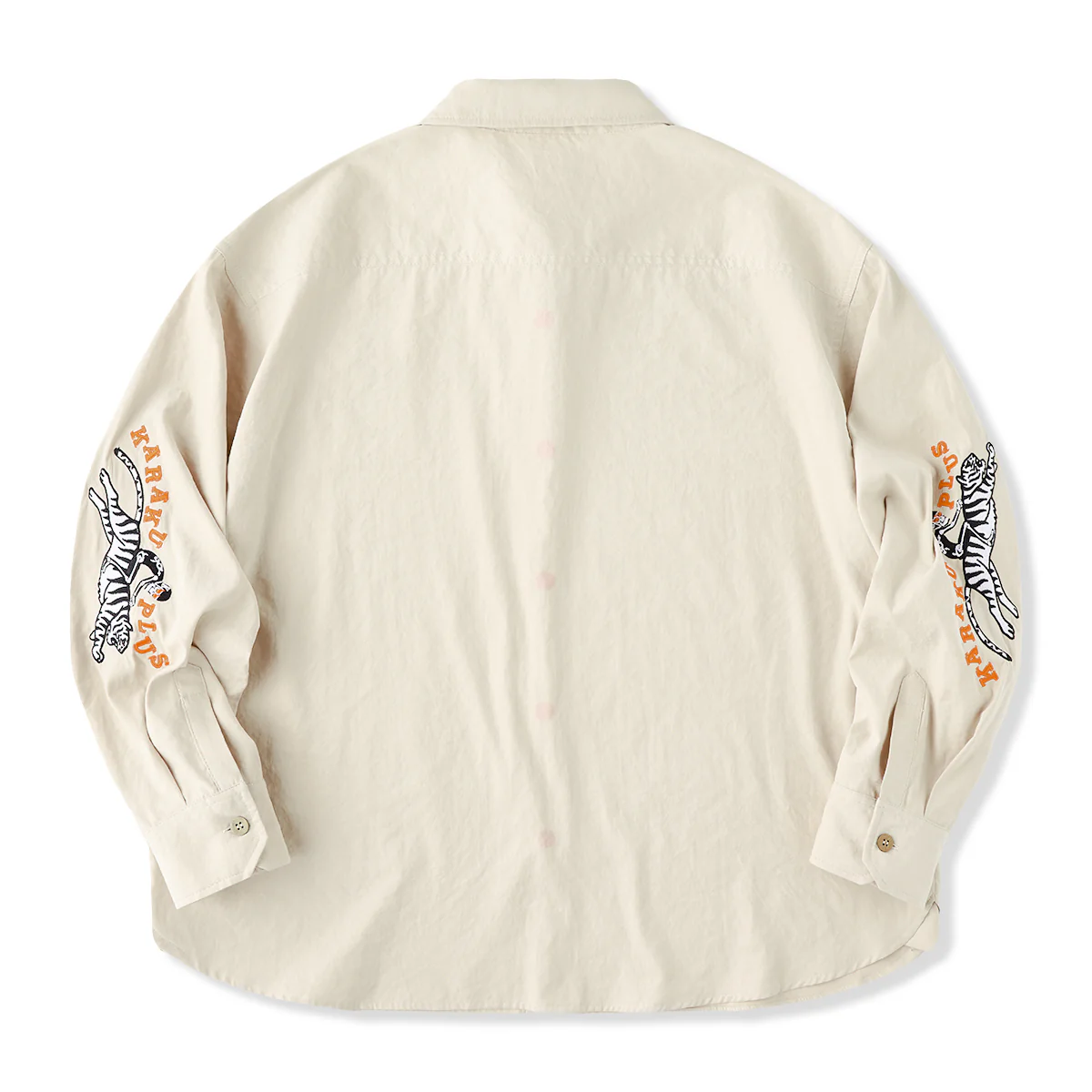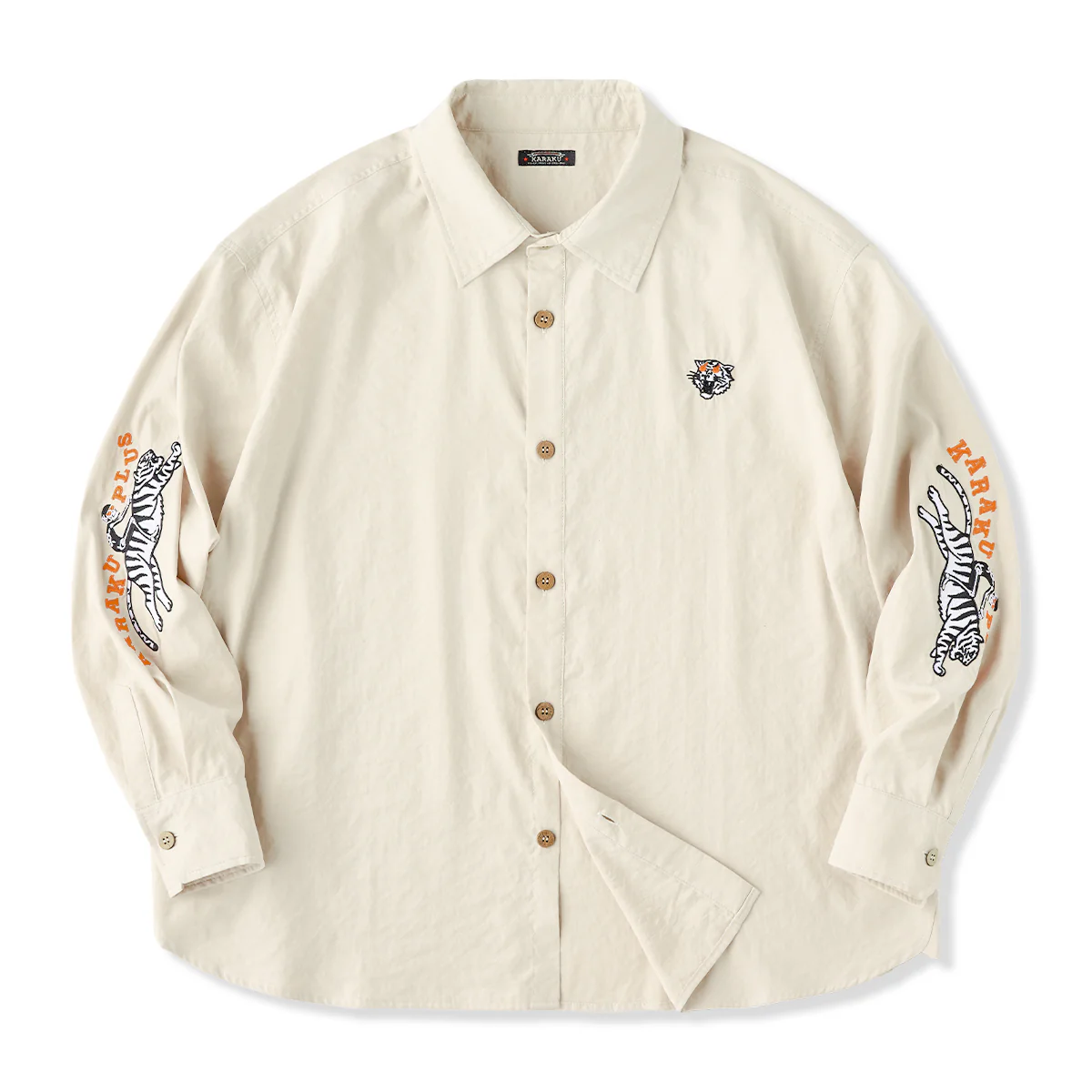「ロアリングタイガー&スカルライダーズ」刺繍入り ピーチスキン長袖シャツ