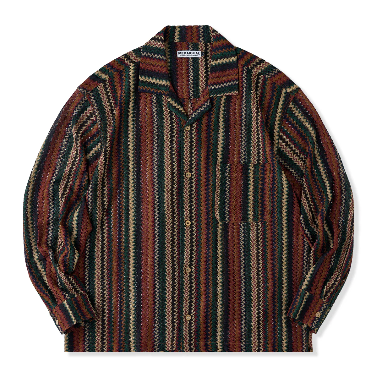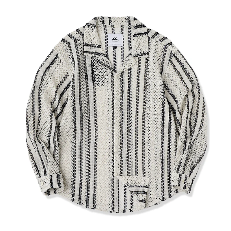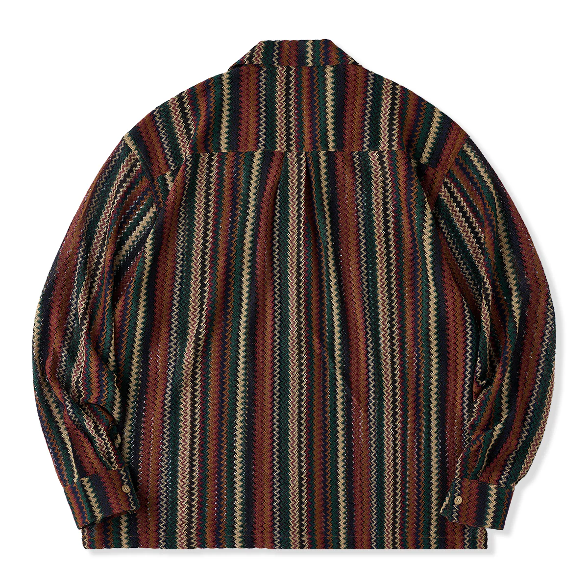 マルチストライプ 透かし彫りニットキューバシャツ 長袖