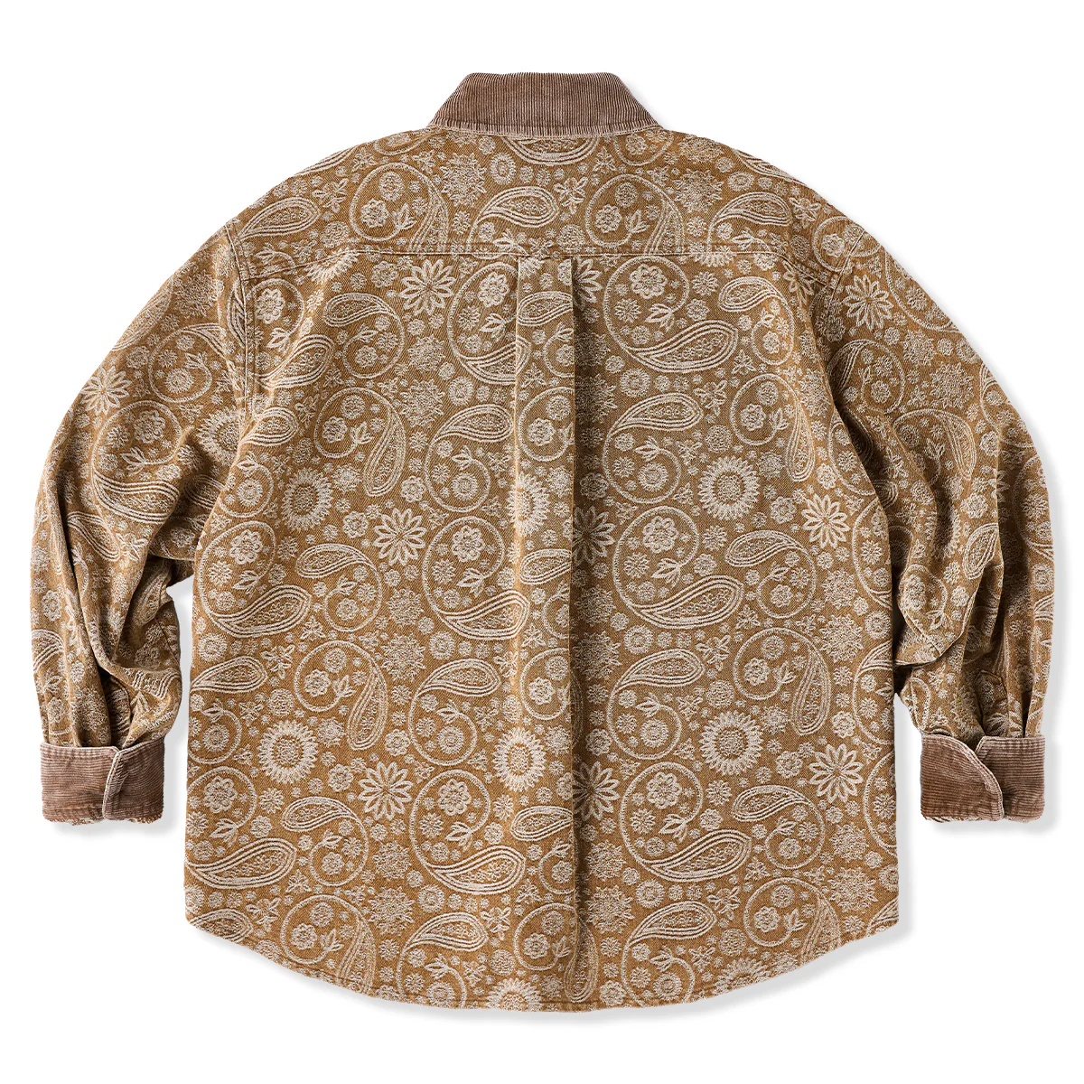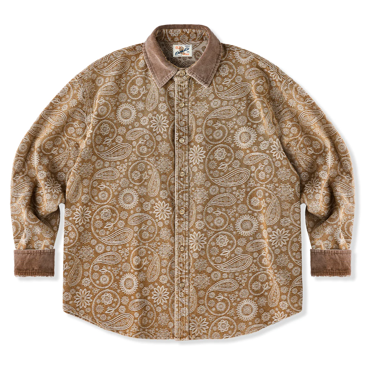 襟・袖口コーデュロイ切替 ペイズリー総柄ジャカード織り長袖シャツ
