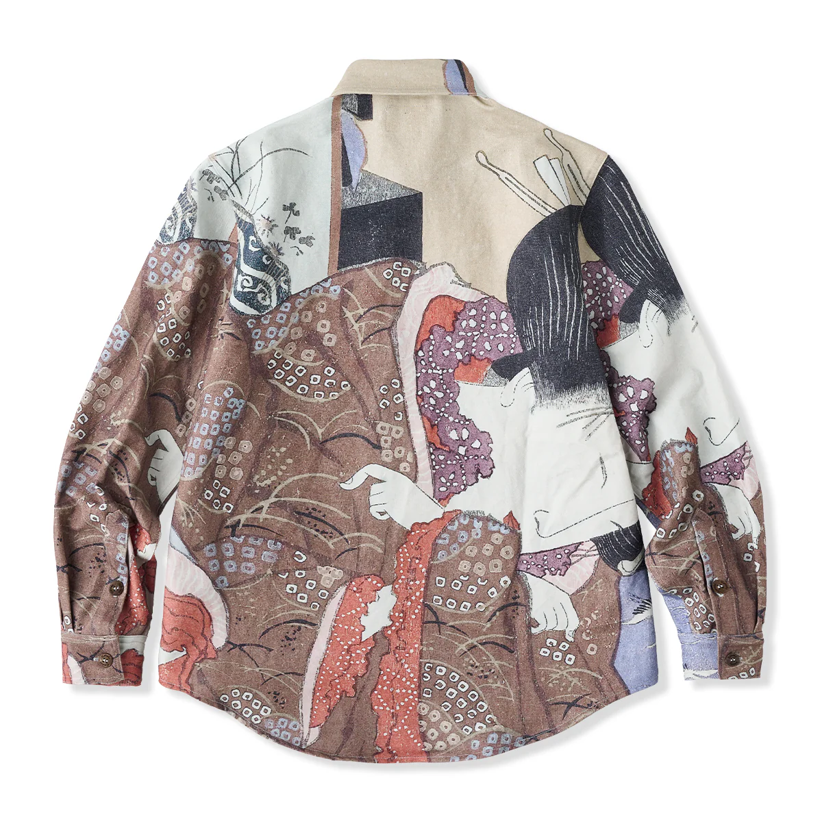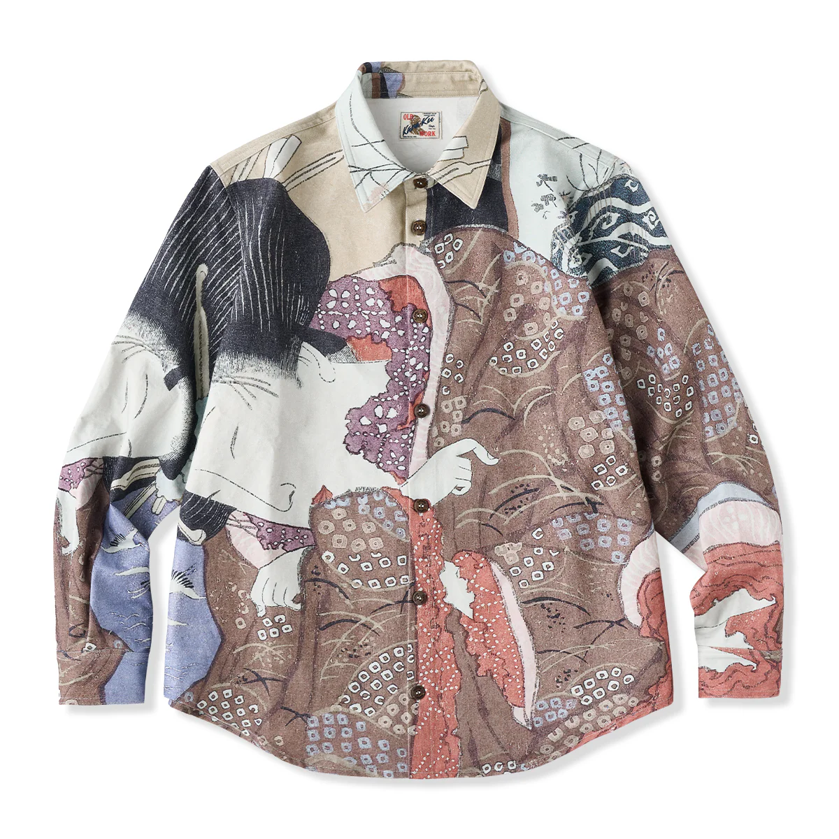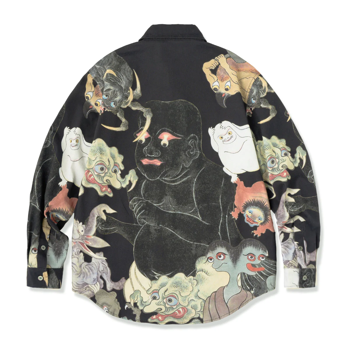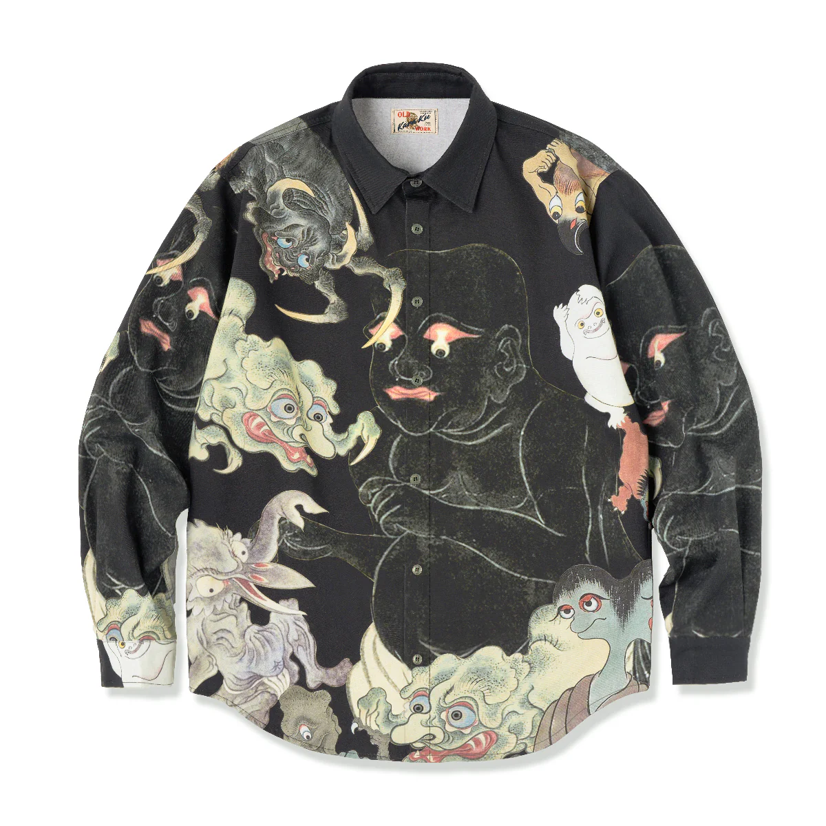 江戸時代「妖怪尽くし図鑑」浮世絵風長袖コットンシャツ