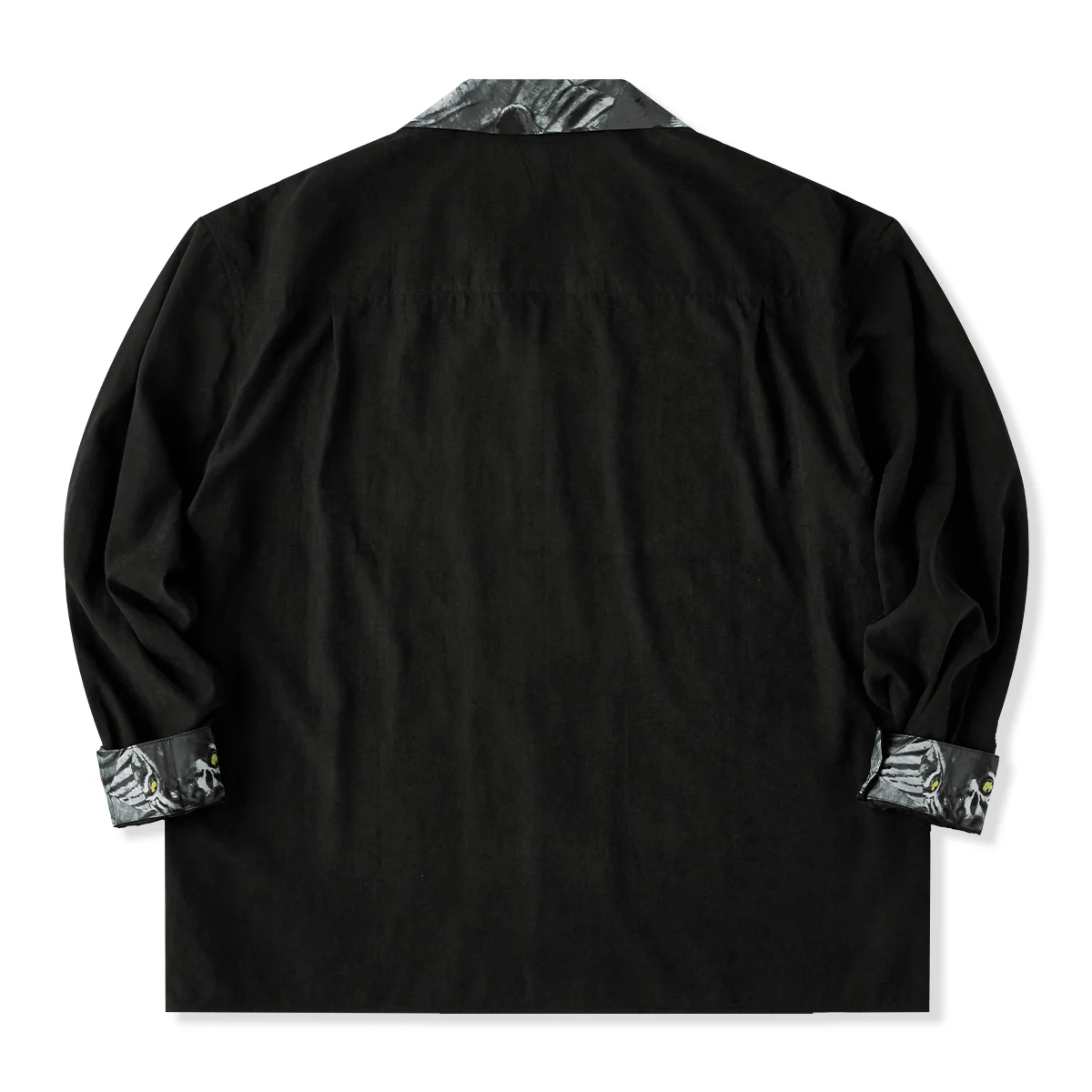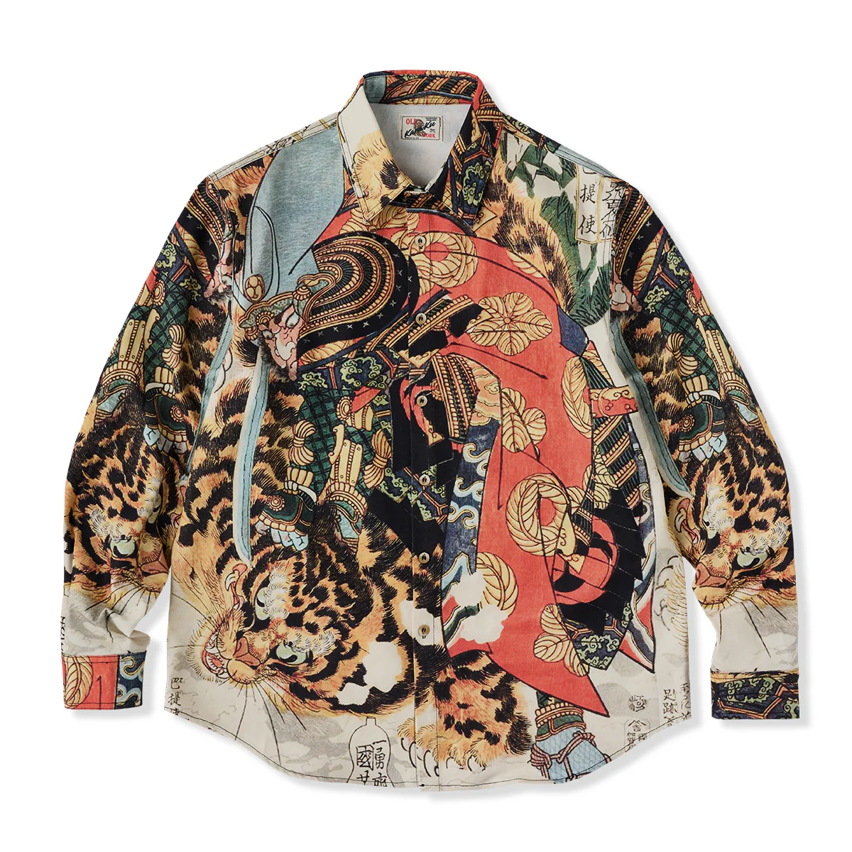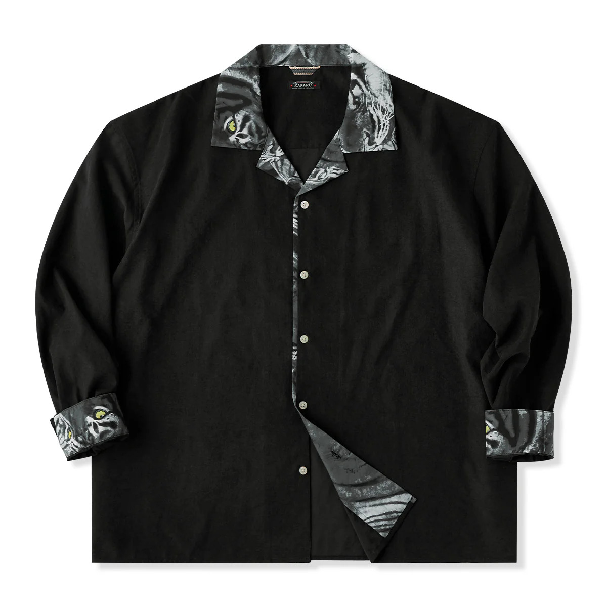 Karaku×川又聡「虎図」プリント切替テクスチャー開襟シャツ