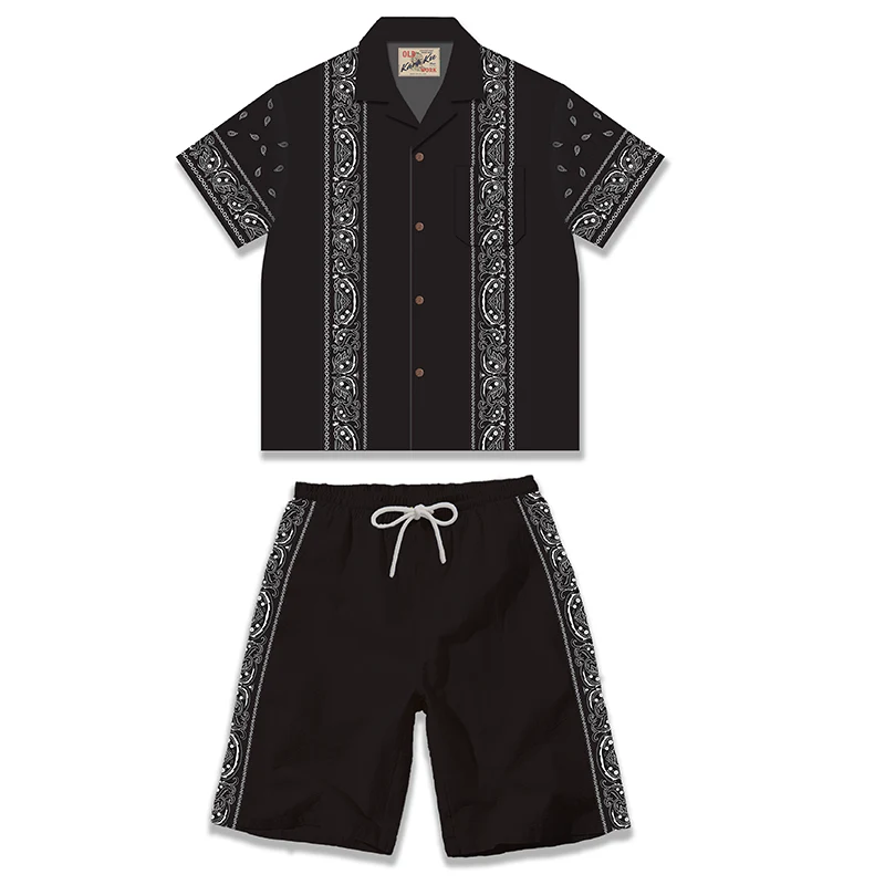 ペイズリー柄綿麻キューバシャツ&ショーツ セット対応