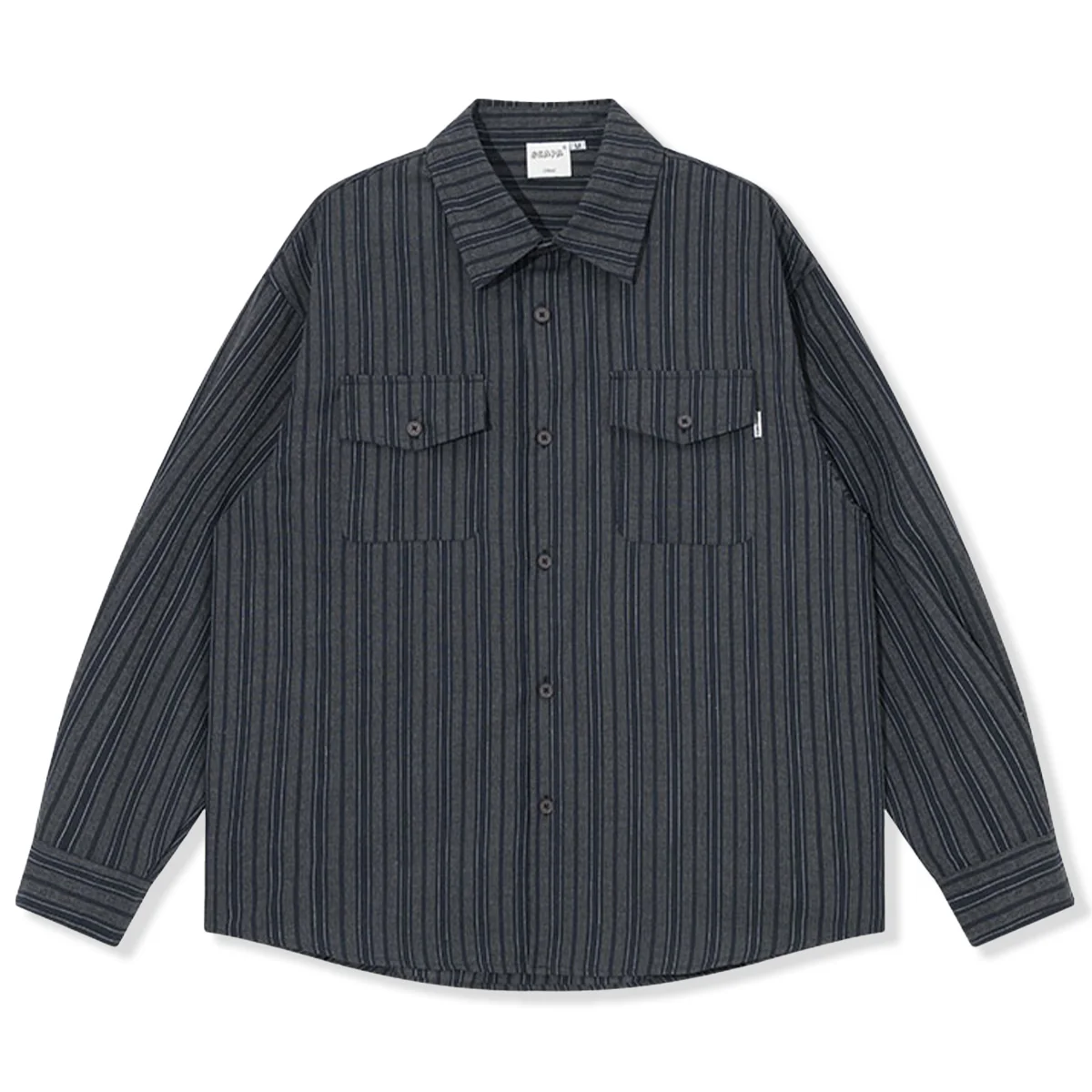 ユーズド加工 レトロストライプ柄ヘビーウェイトオーバーシャツ