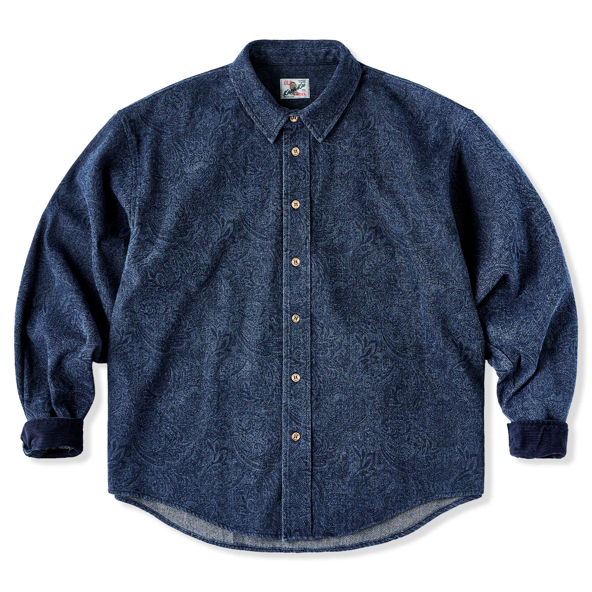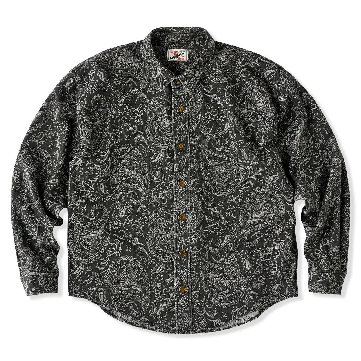 ジャガードペイズリー総柄ウォッシュデニム長袖シャツ